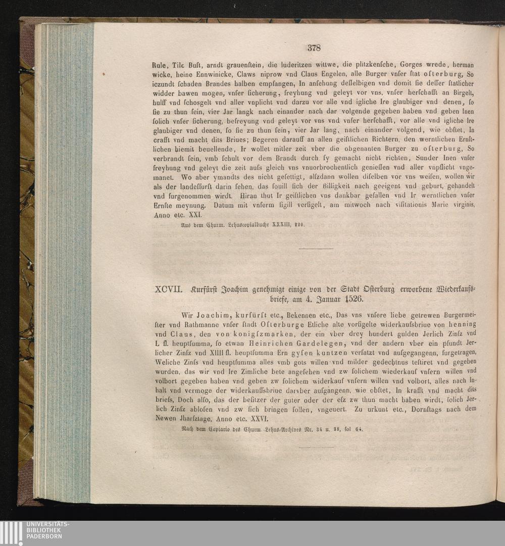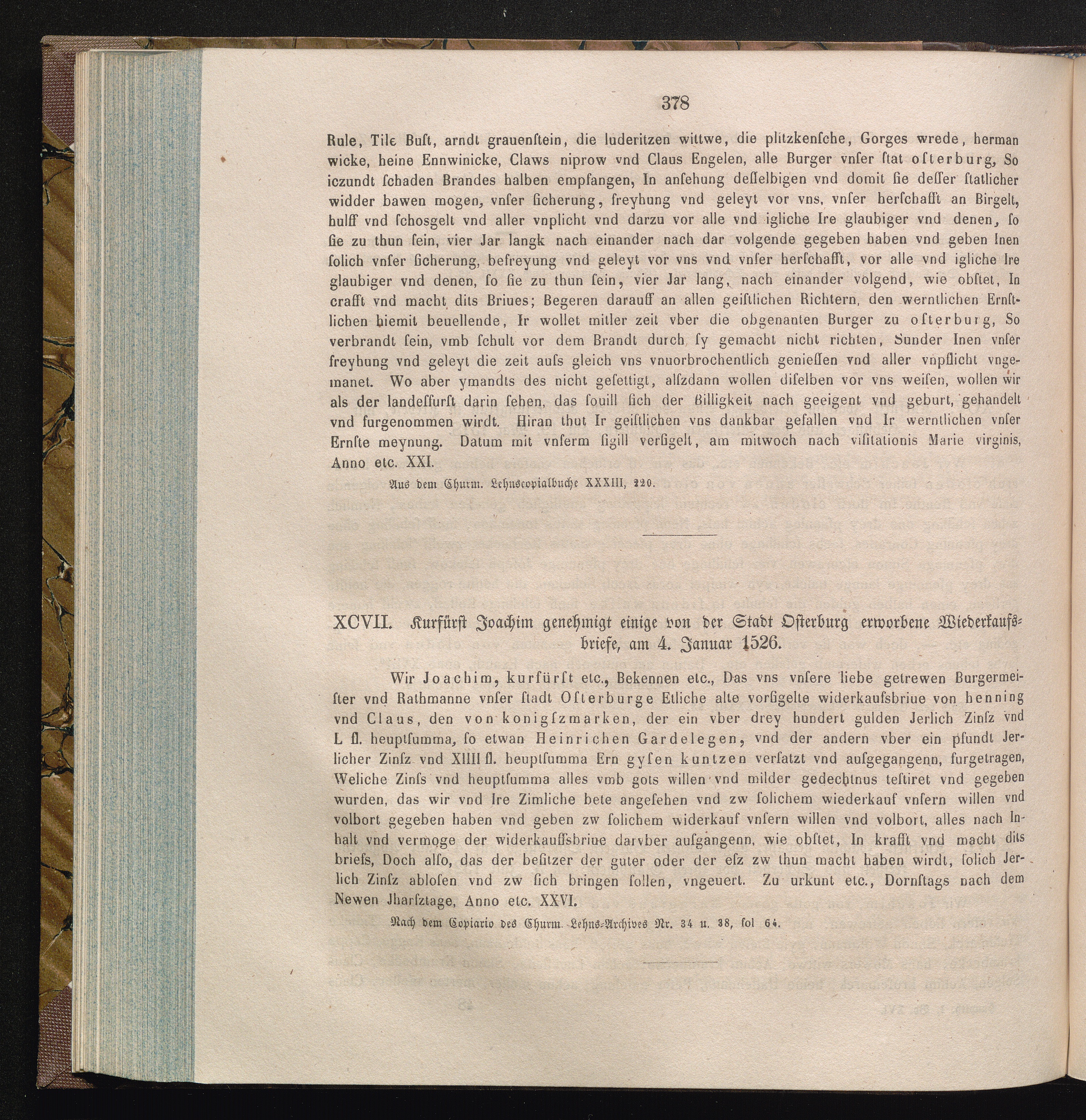 XCVII. Kurfürst Joachim genehmigt einige von der Stadt Osterburg erworbene Wiederkaufsbriefe,[...]
