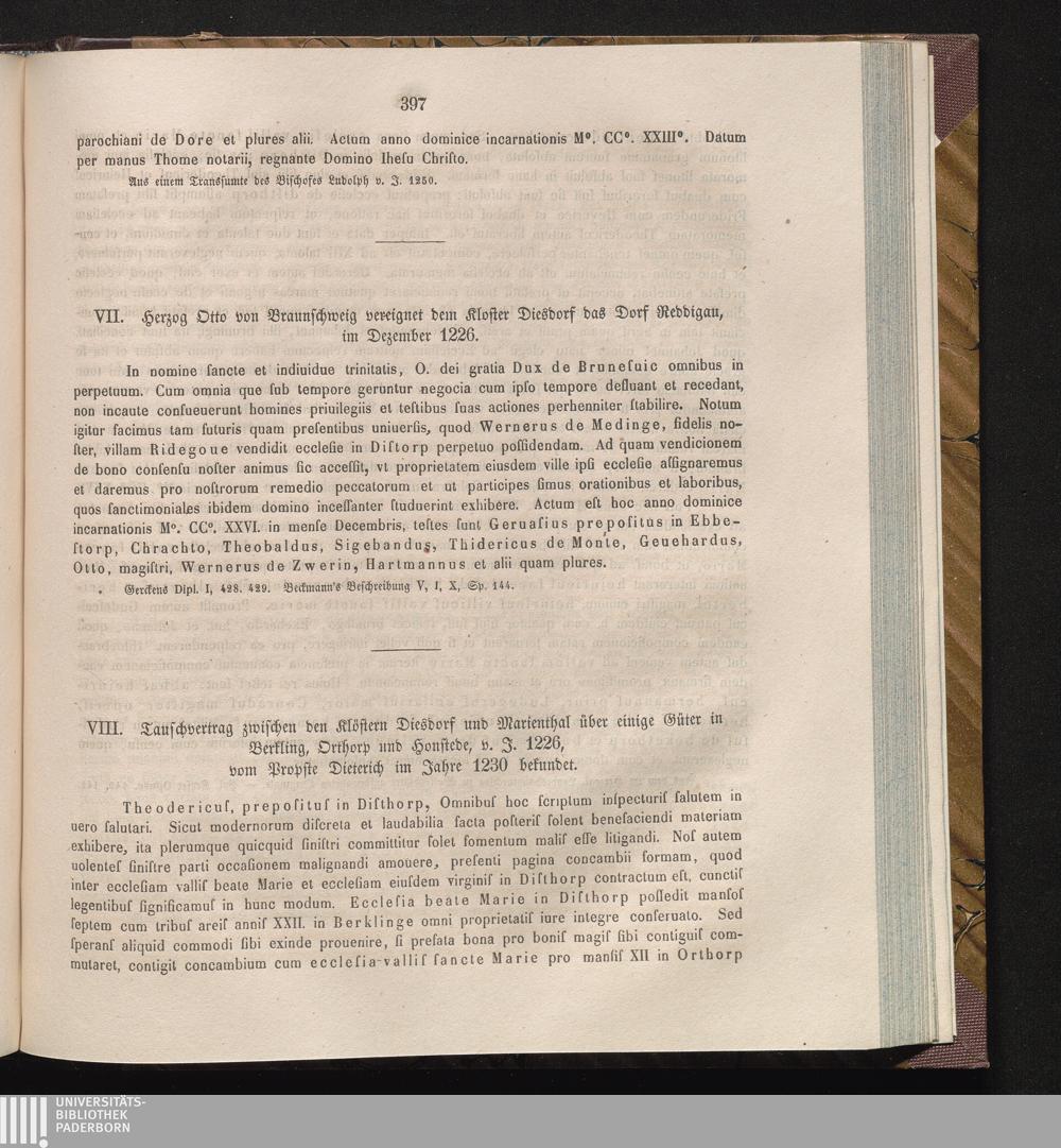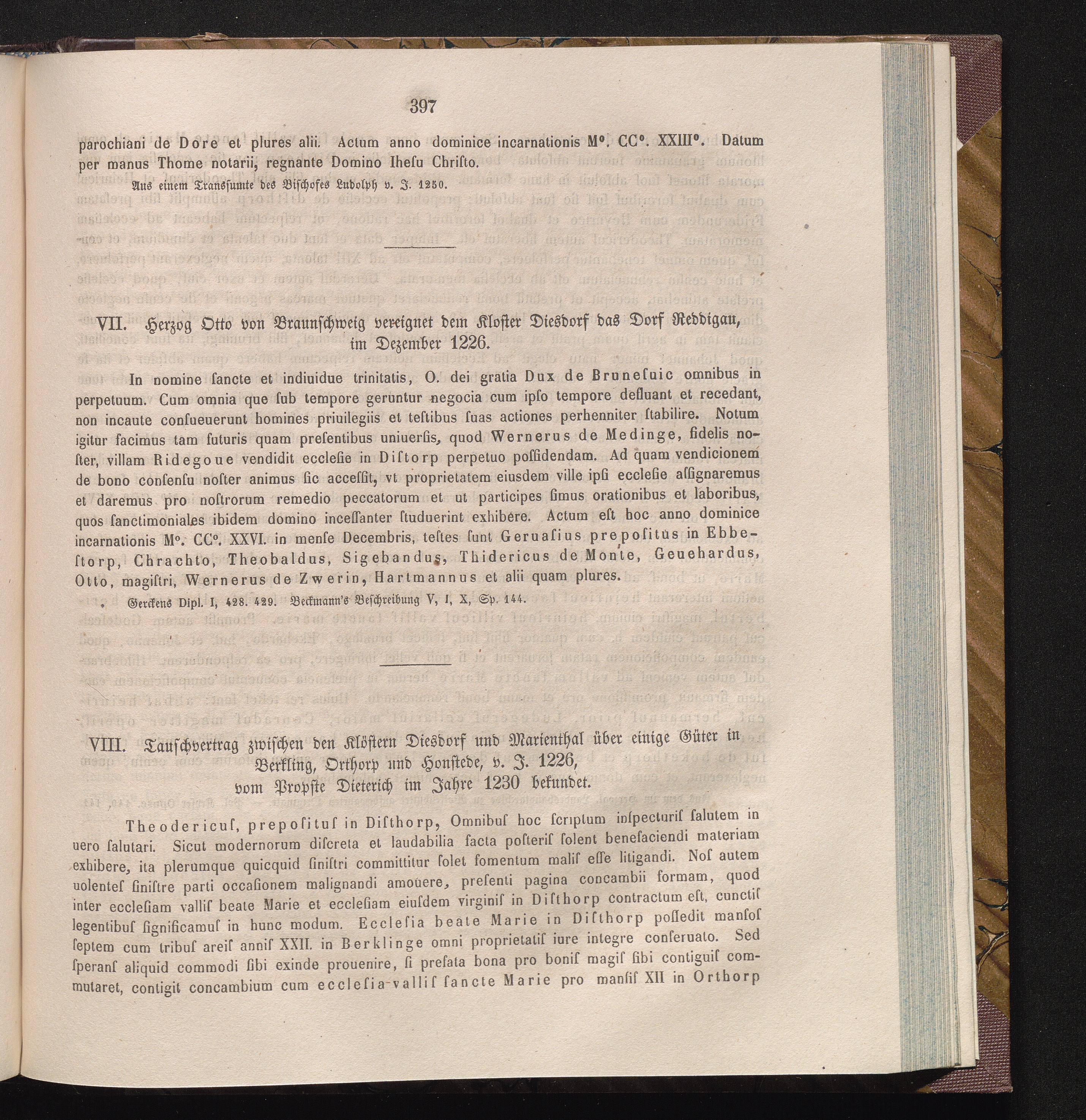 VIII. Tauschvertrag zwischen den Klöstern Diesdorf und Marienthal über einige Güter[...]