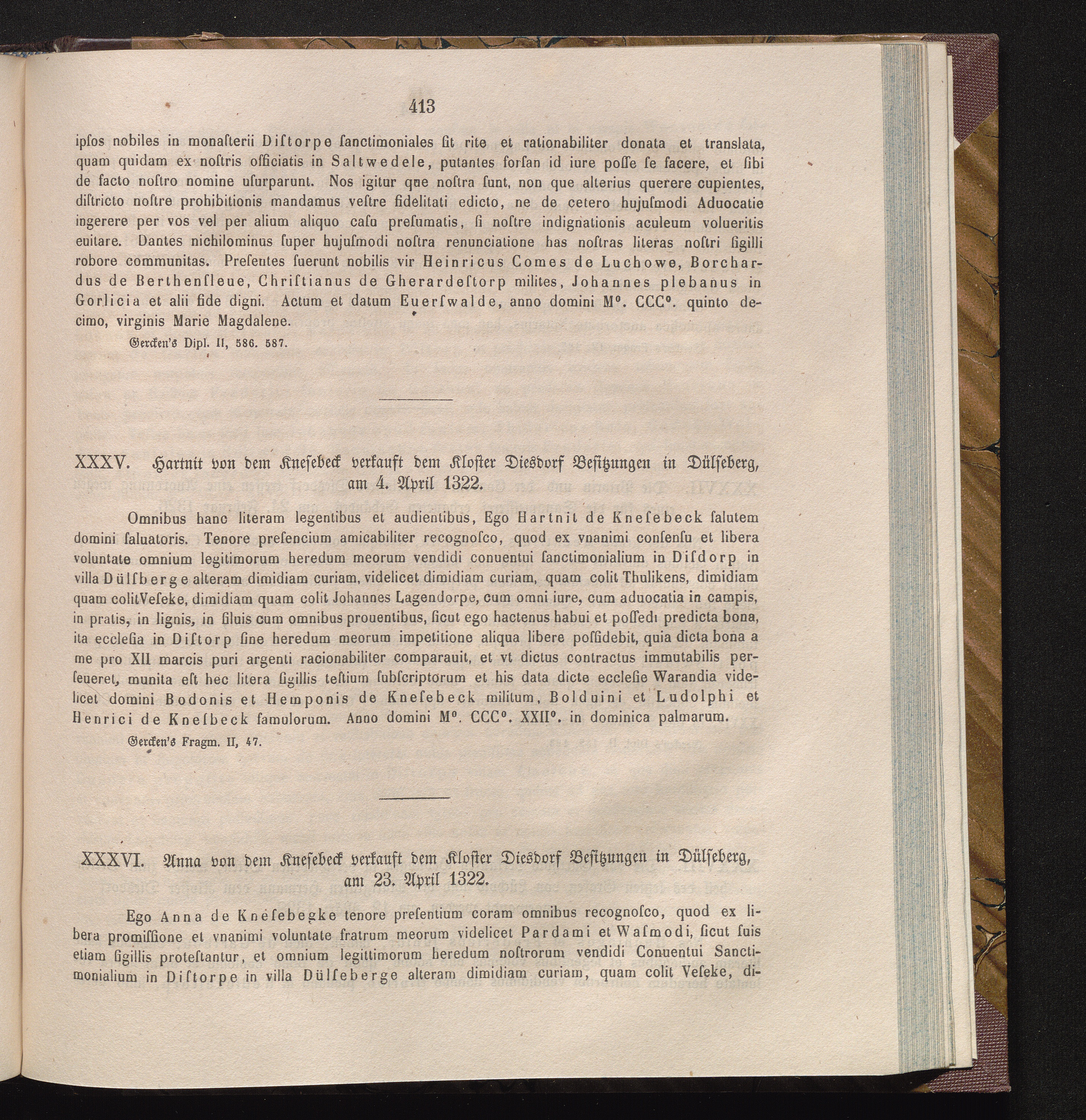 XXXVI. Anna von dem Knesebeck verkauft dem Kloster Diesdorf Besitzungen in Dülseberg,[...]