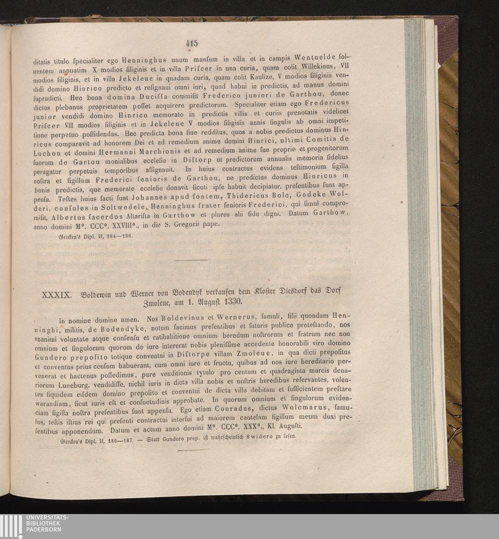 XXXIX. Boldewin und Werner von Bodendyk verkaufen dem Kloster Diesdorf das Dorf Zmoleue,[...]