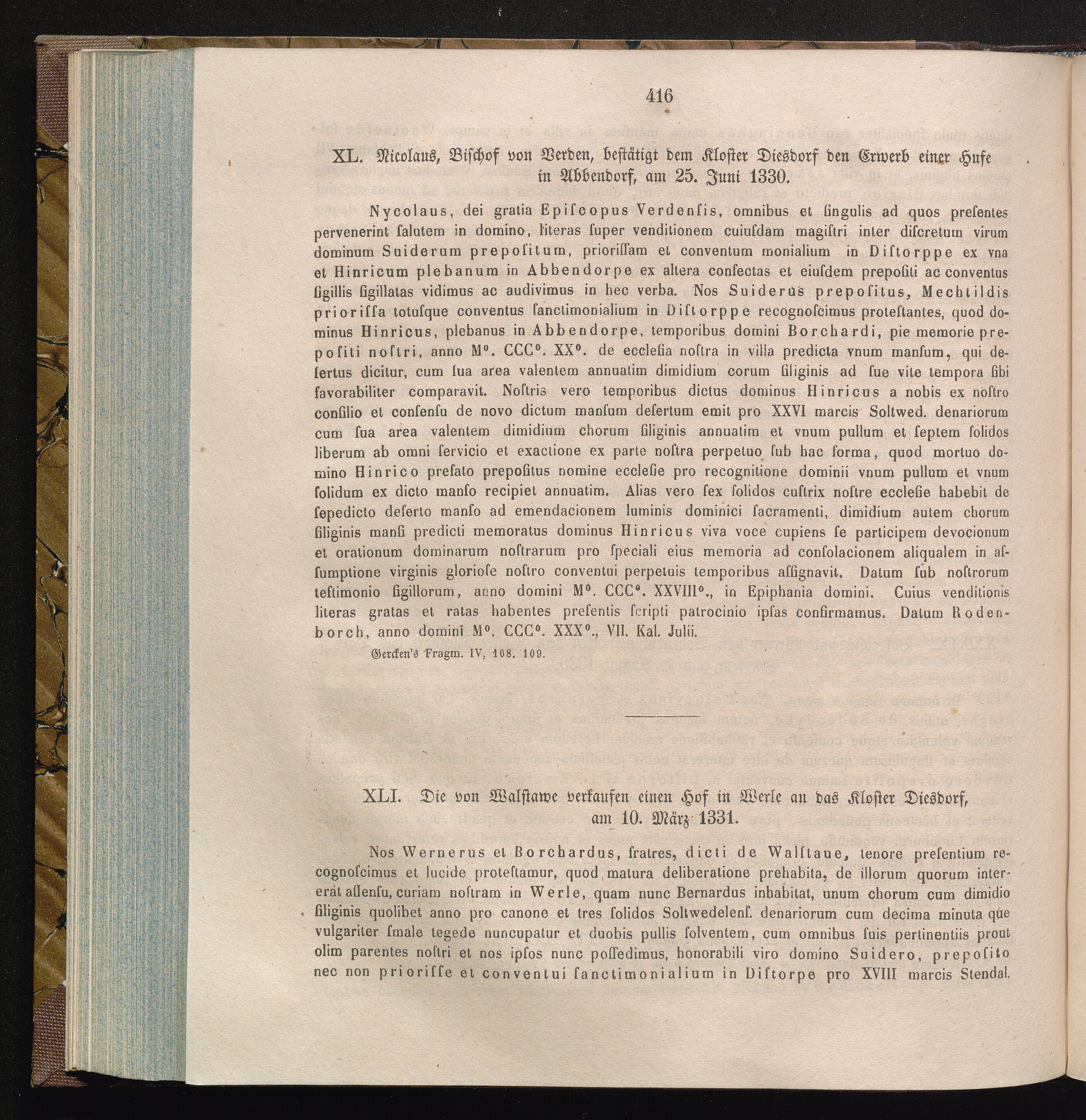 XLI. Die von Walstawe verkaufen einen Hof in Werle an das Kloster Diesdorf, am 10.[...]