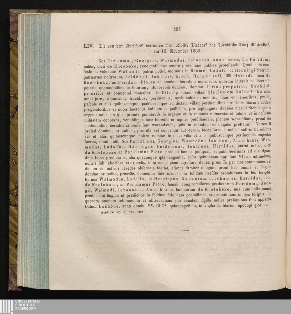 LIV. Die von dem Knesebeck verkaufen dem Kloster Diesdorf das Wendische Dorf Rüstenbeck,[...]