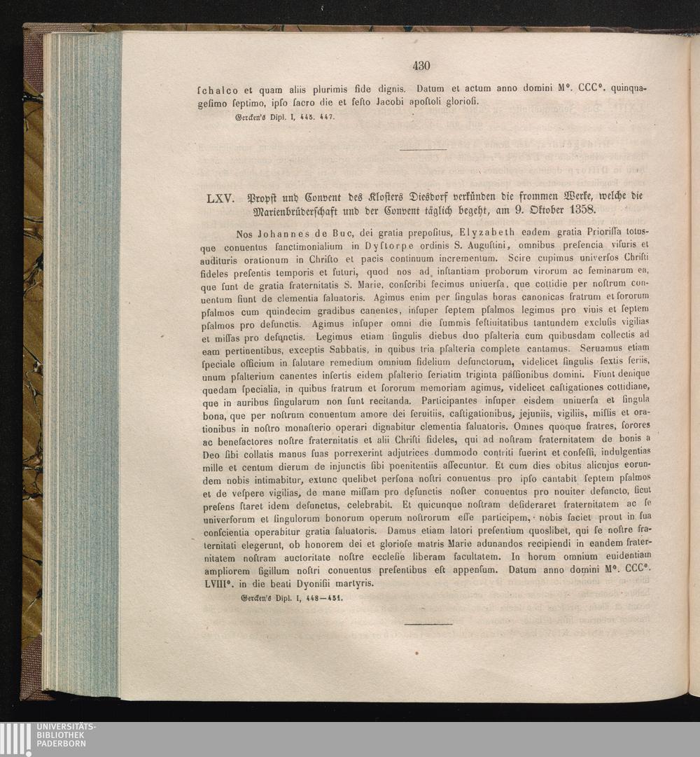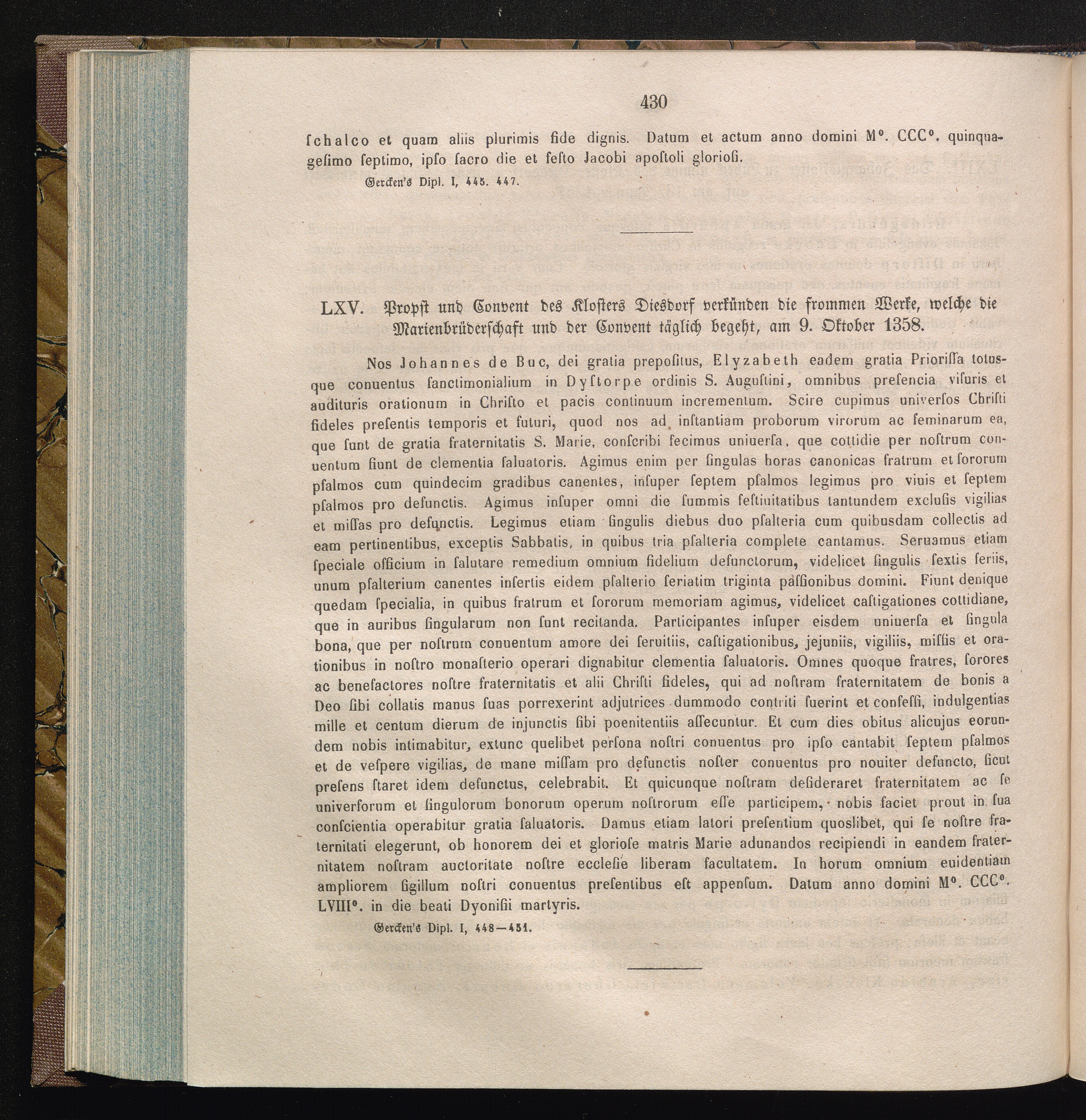 LXV. Propst und Convent des Klosters Diesdorf verkünden die frommen Werke, welche[...]