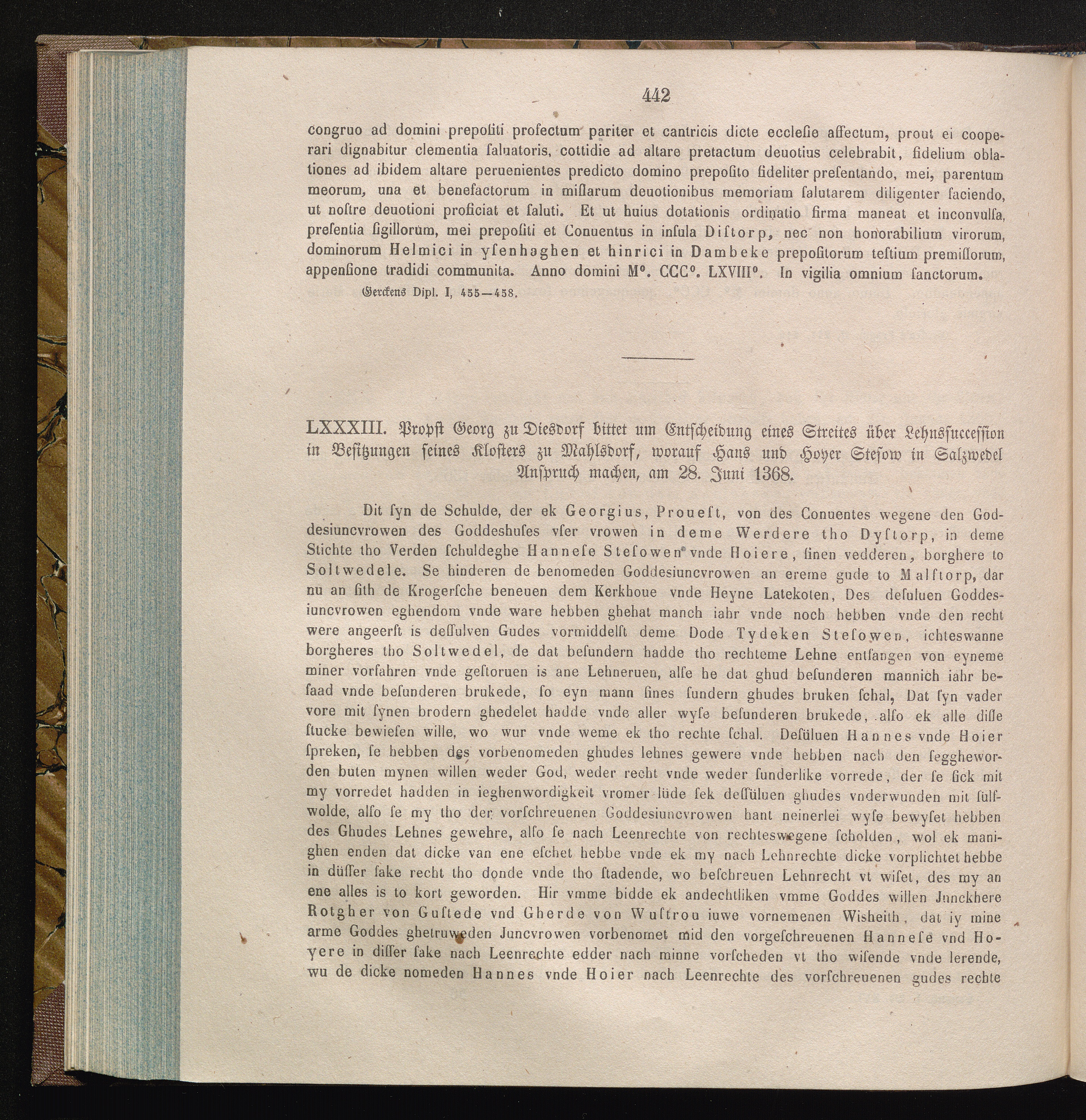 LXXXIII. Propst Georg zu Diesdorf bittet um Entscheidung eines Streites über Lehnssuccession[...]