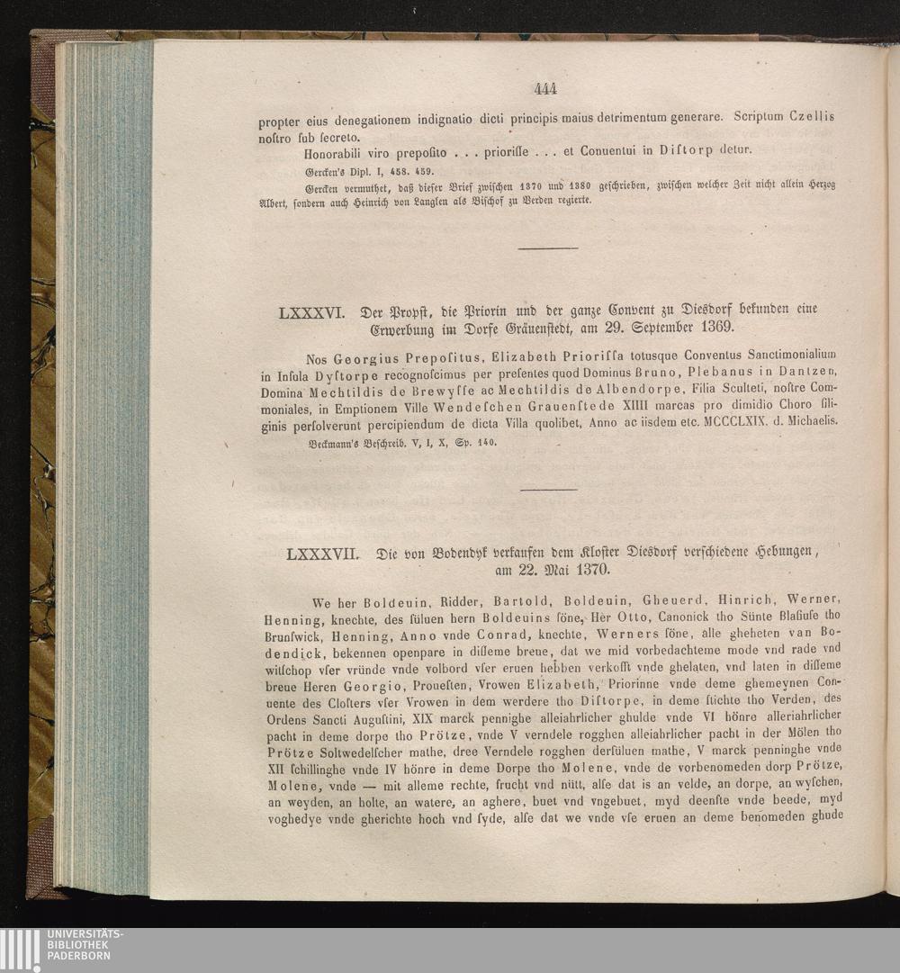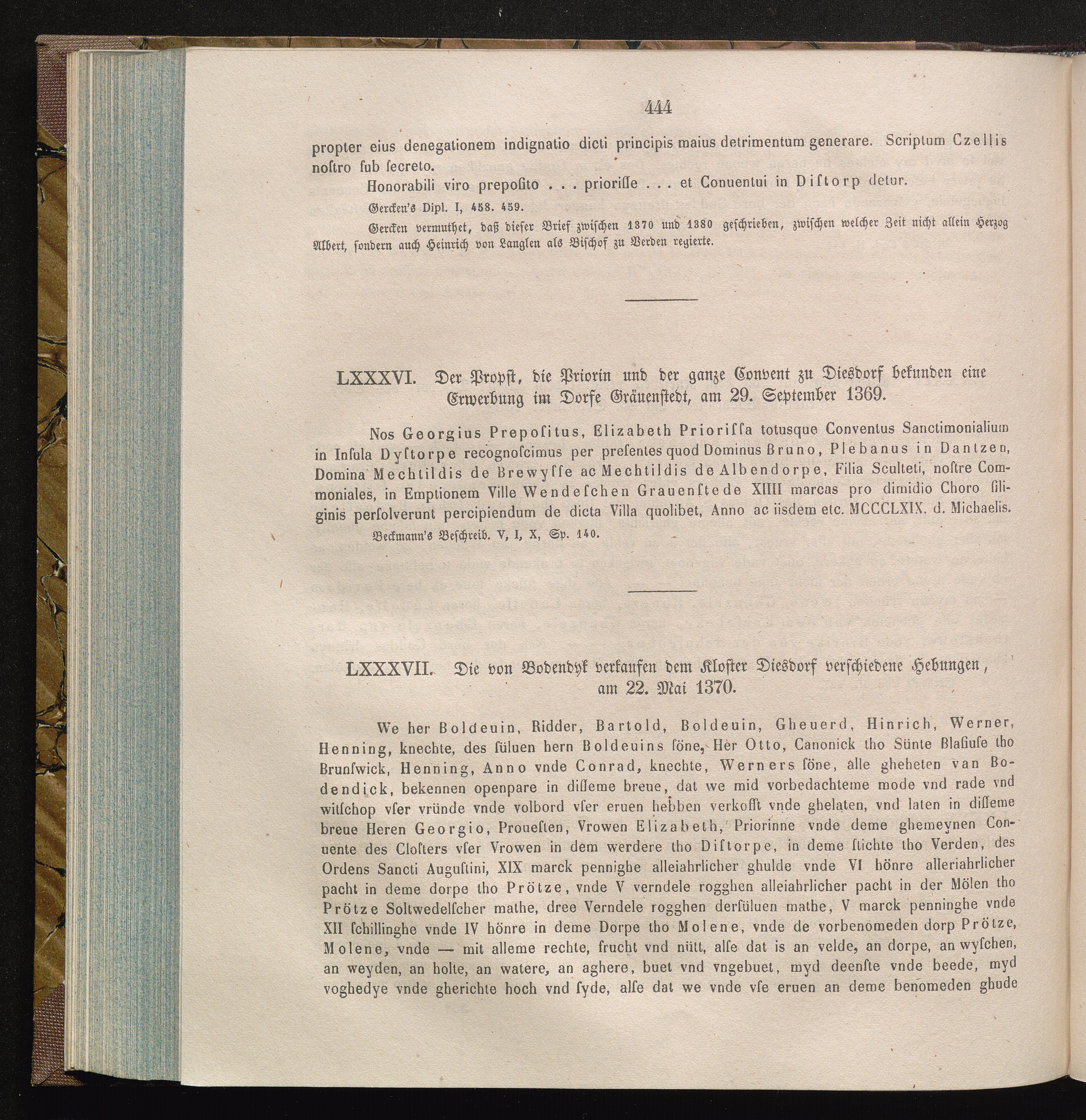 LXXXVII. Die von Bodendyk verkaufen dem Kloster Diesdorf verschiedene Hebungen, am[...]
