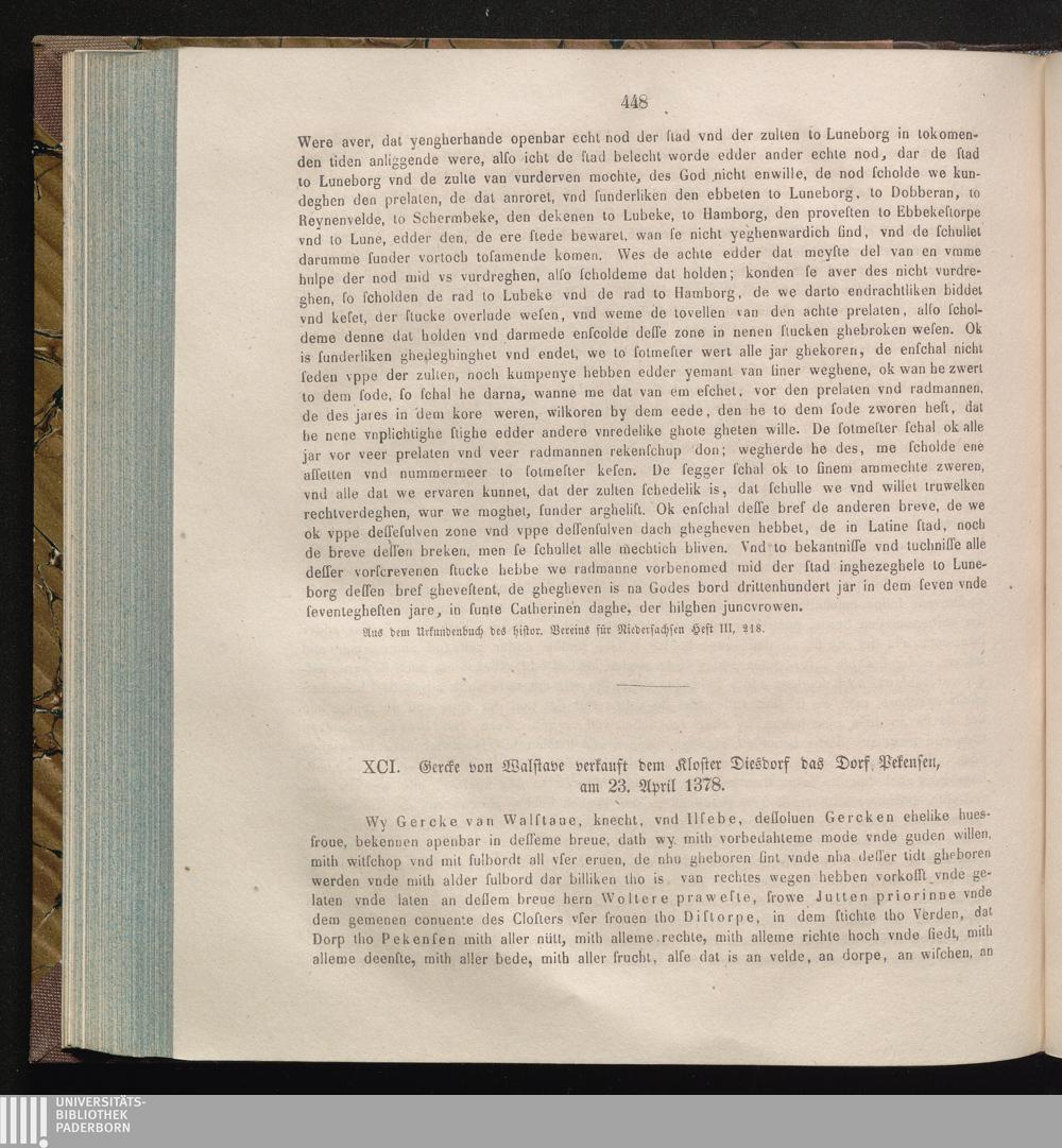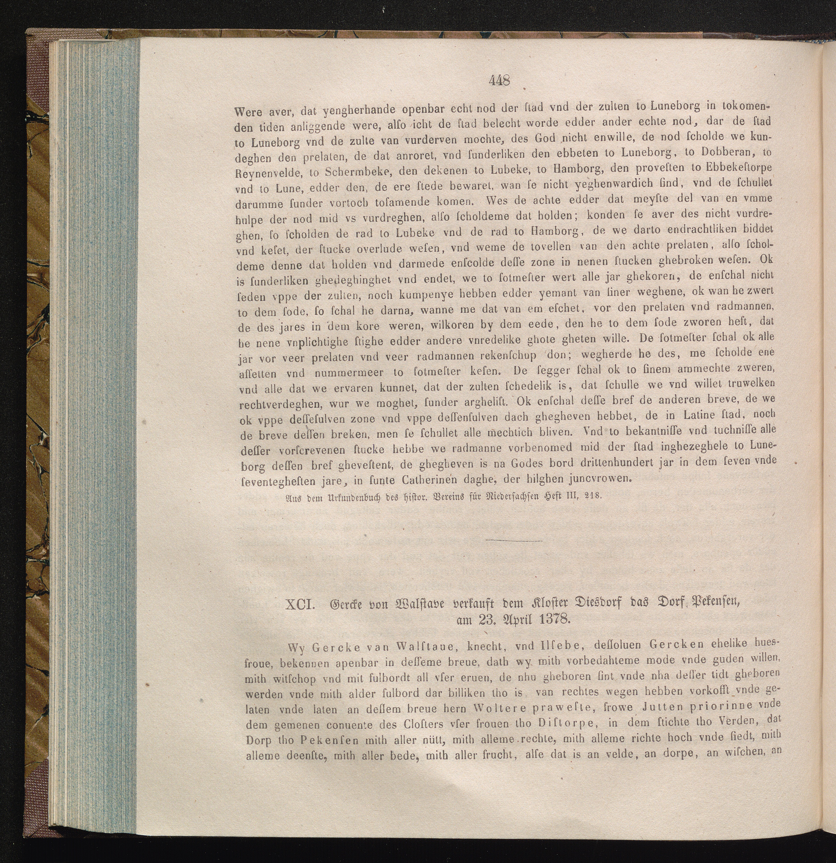 XCI. Gercke von Walstave verkauft dem Kloster Diesdorf das Dorf Pekensen, am 23.[...]