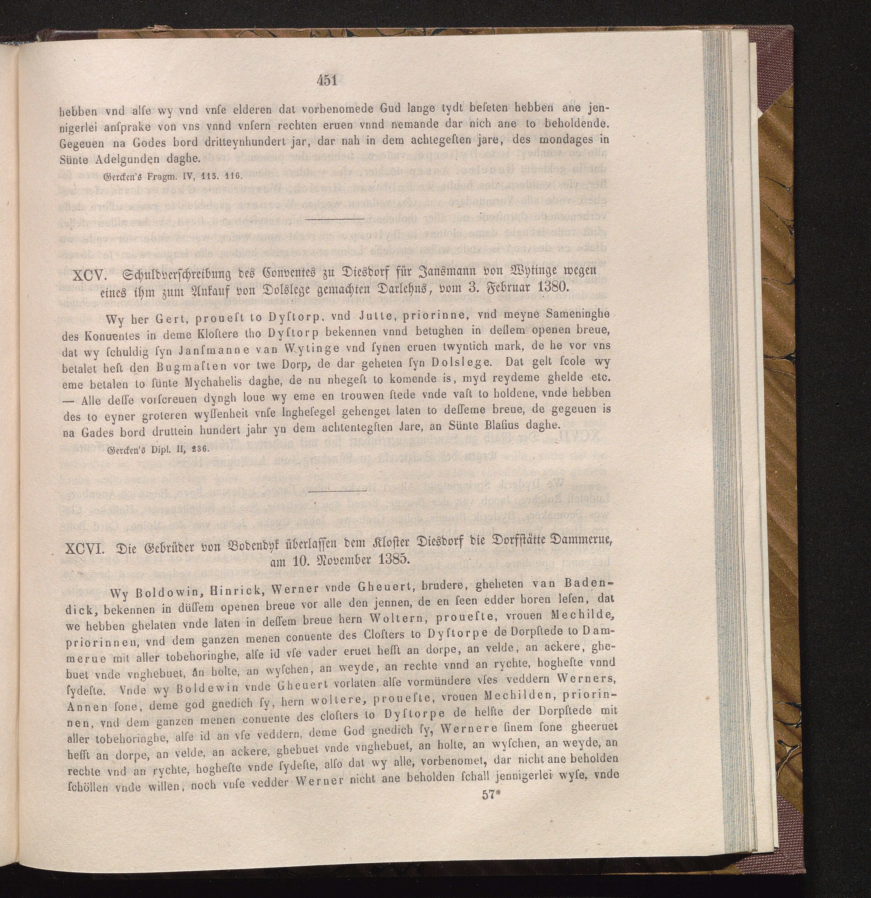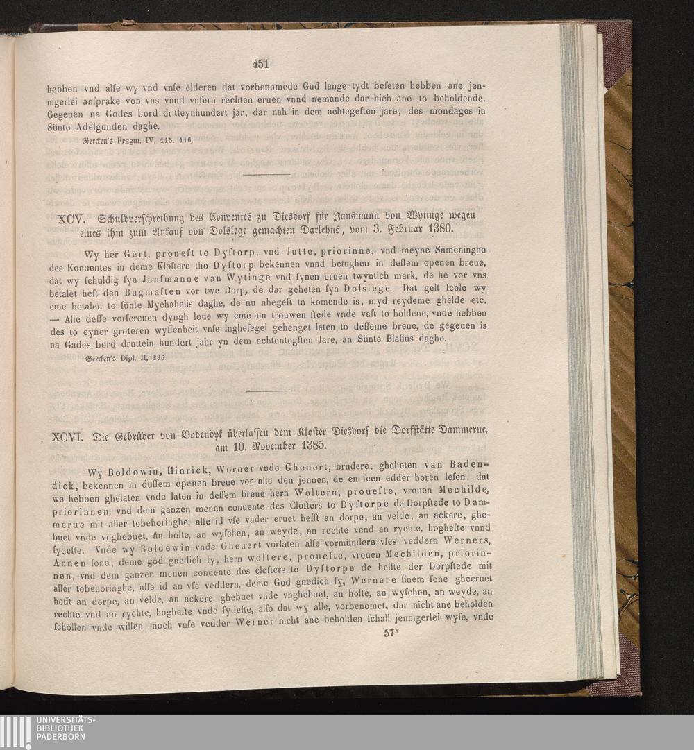 XCVI. Die Gebrüder von Bodendyk überlassen dem Kloster Diesdorf die Dorfstätte Dammerne,[...]