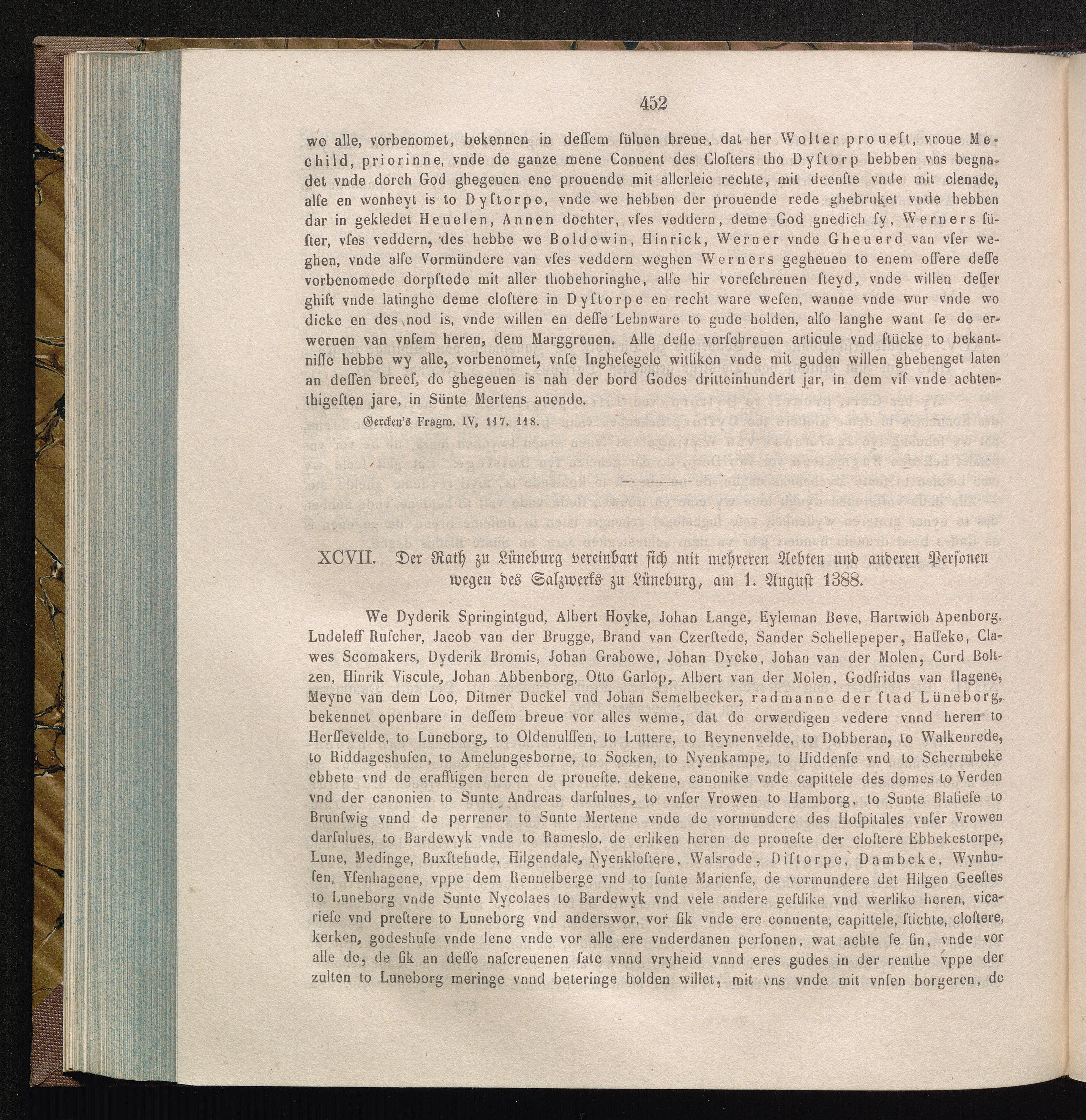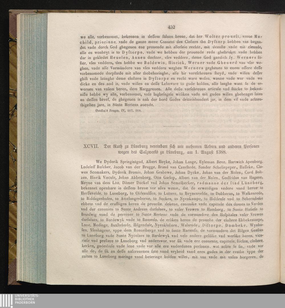 XCVII. Der Rath zu Lüneburg vereinbart sich mit mehreren Aebten und anderen Personen[...]