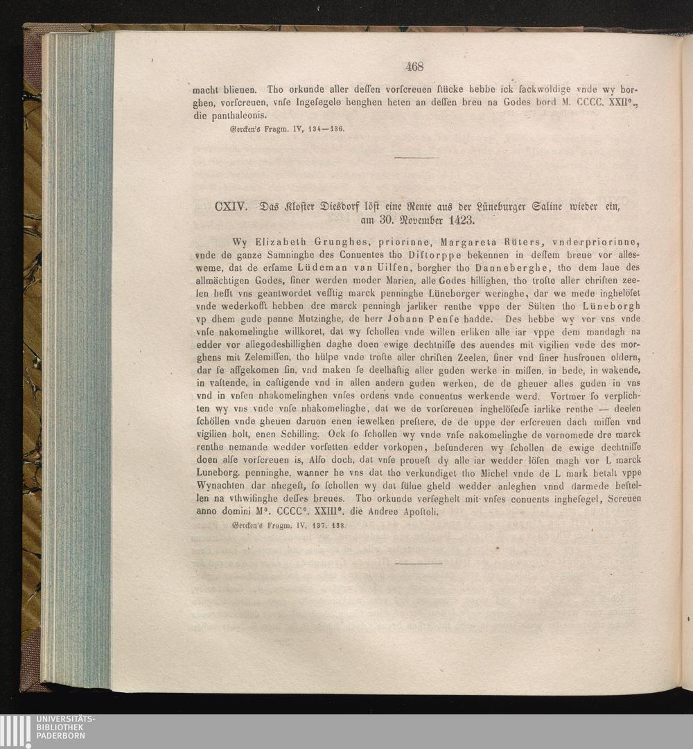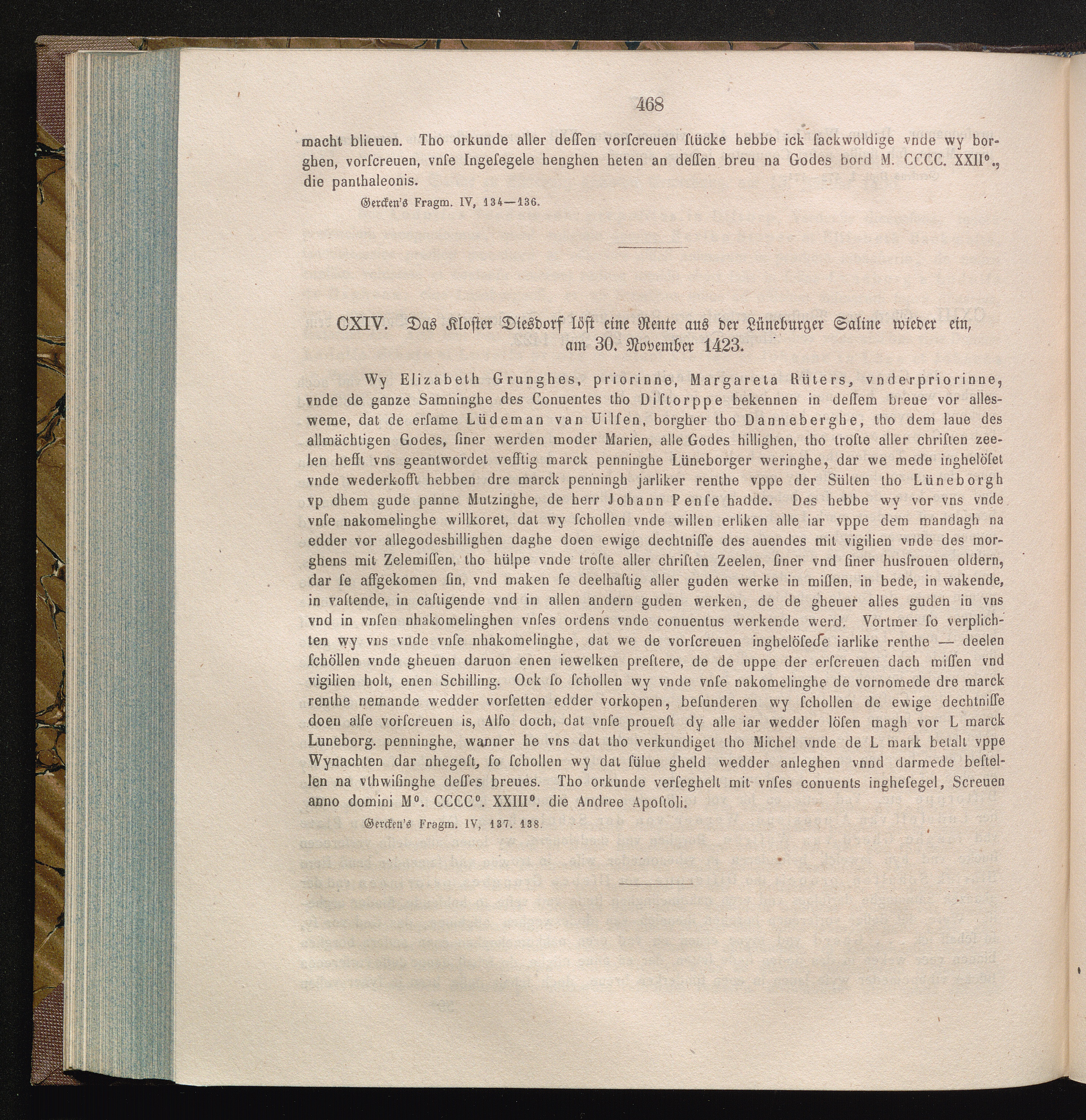 CXIV. Das Kloster Diesdorf löst eine Rente aus der Lüneburger Saline wieder ein,[...]