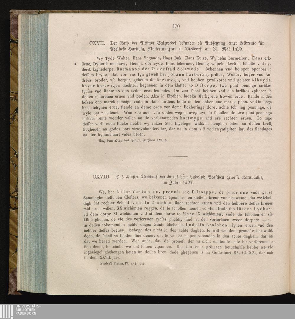 CXVIII. Das Kloster Diesdorf verschreibt dem Ludolph Braschen gewisse Kornpächte,[...]