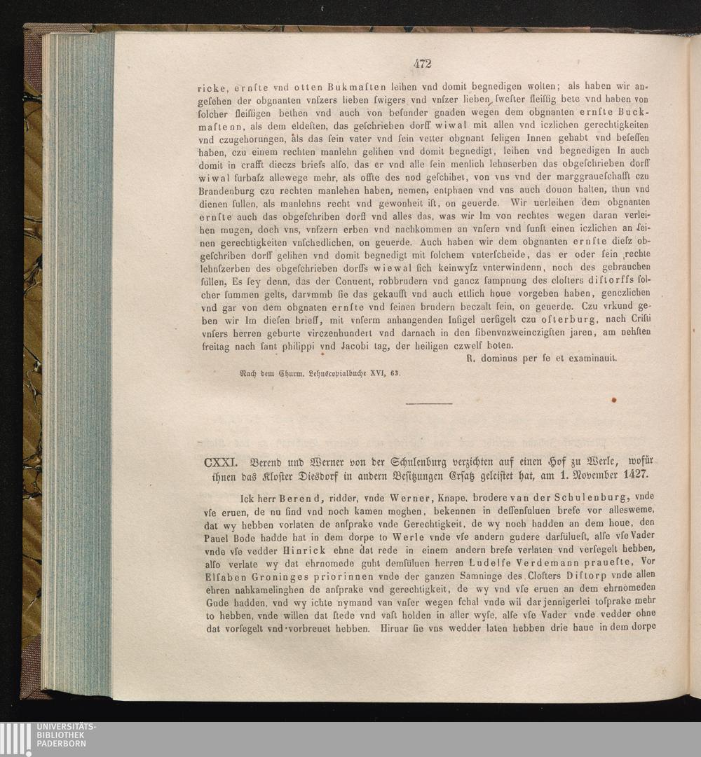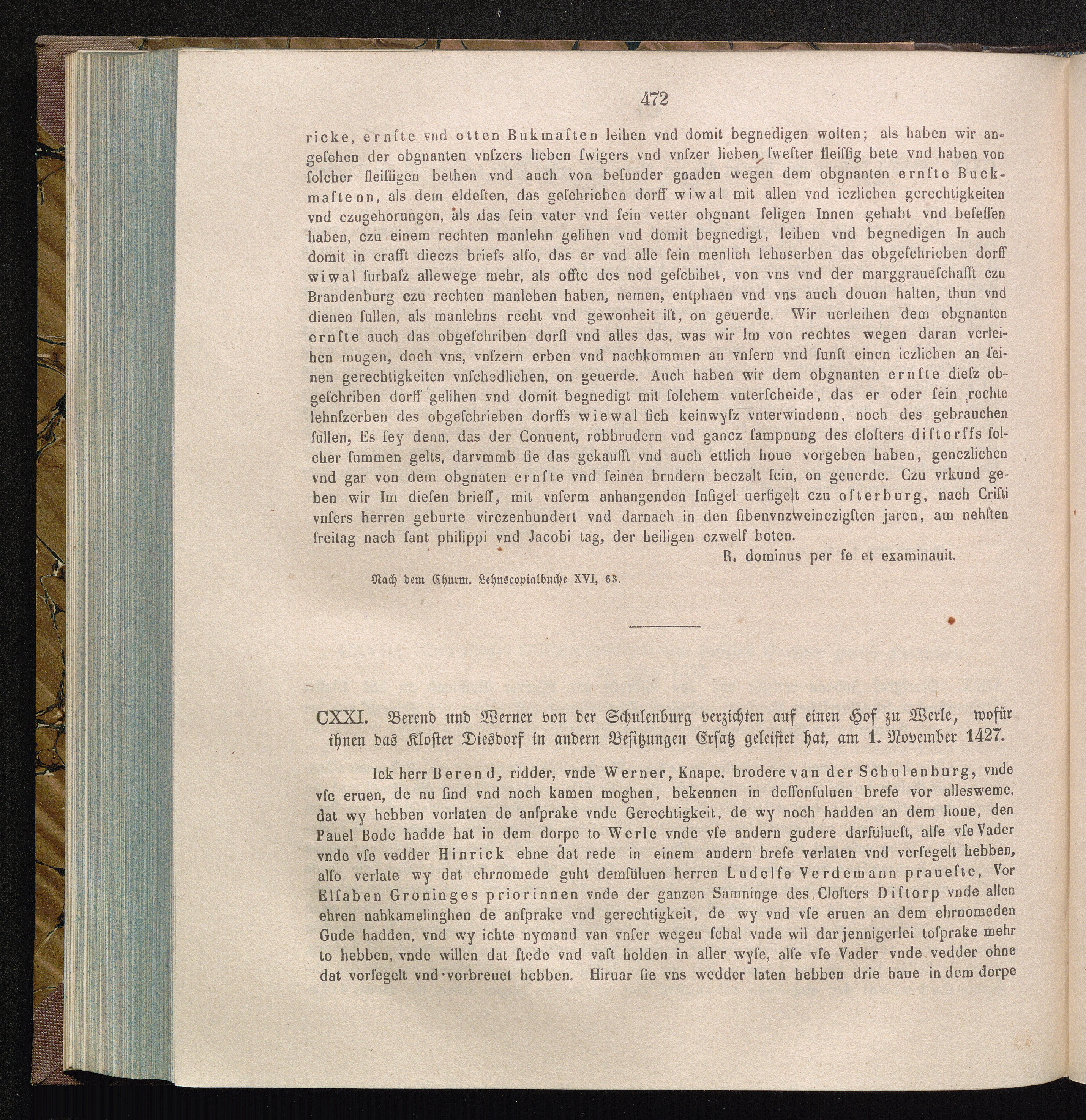 CXXI. Berend und Werner von der Schulenburg verzichten auf einen Hof zu Werle, wofür[...]