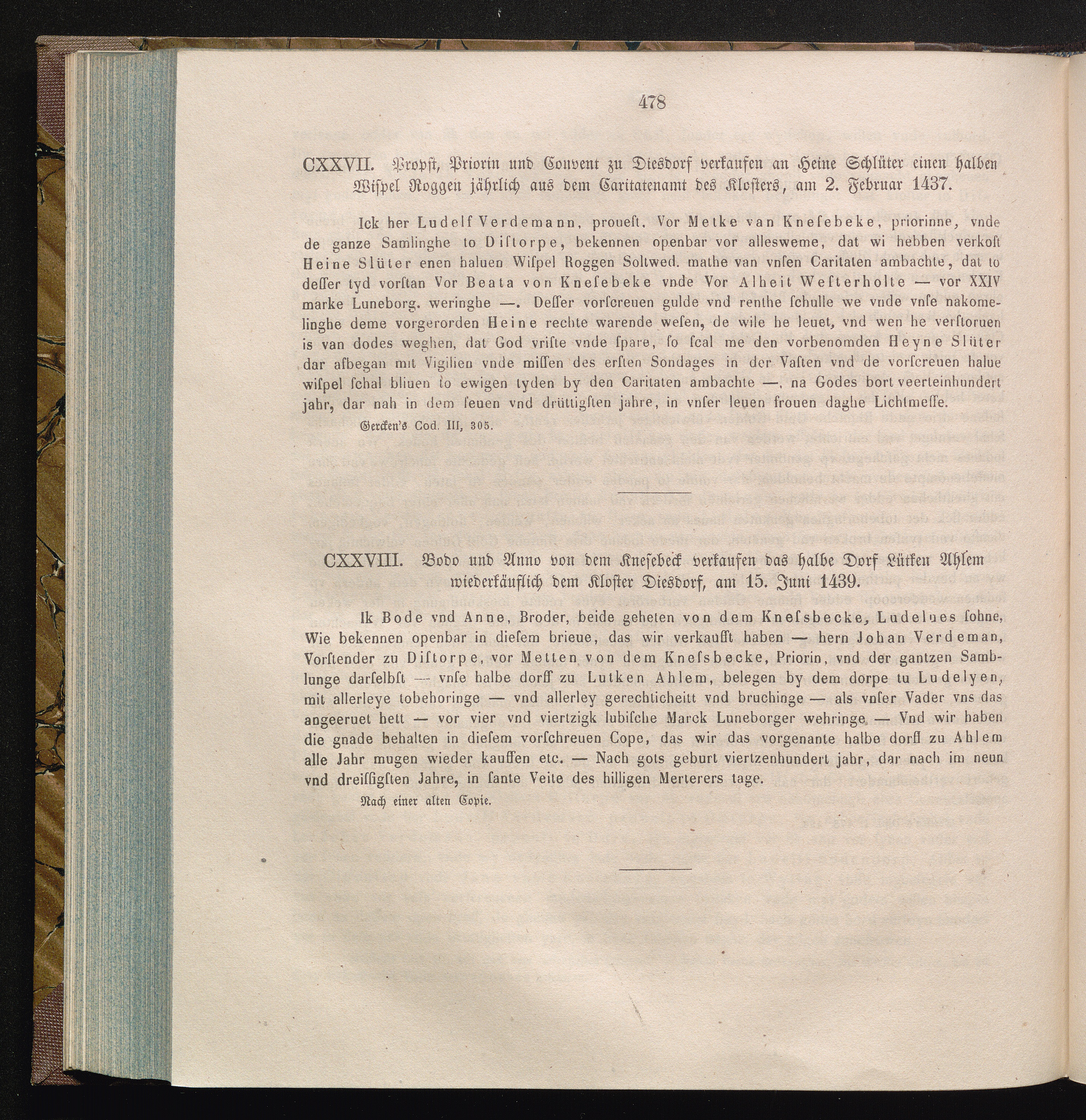 CXXVIII. Bodo und Arno von dem Knesebeck verkaufen das halbe Dorf Lütken Ahlem wiederkäuflich[...]