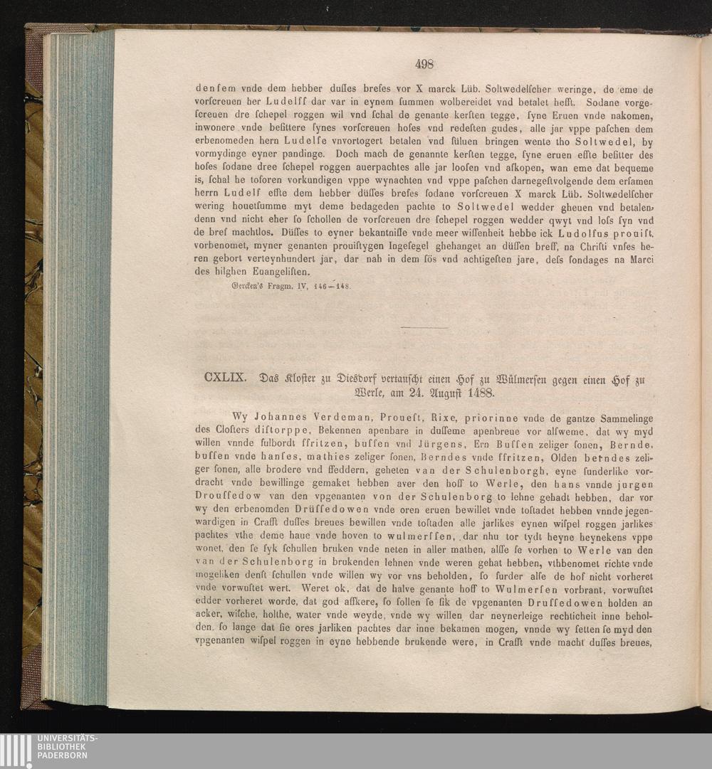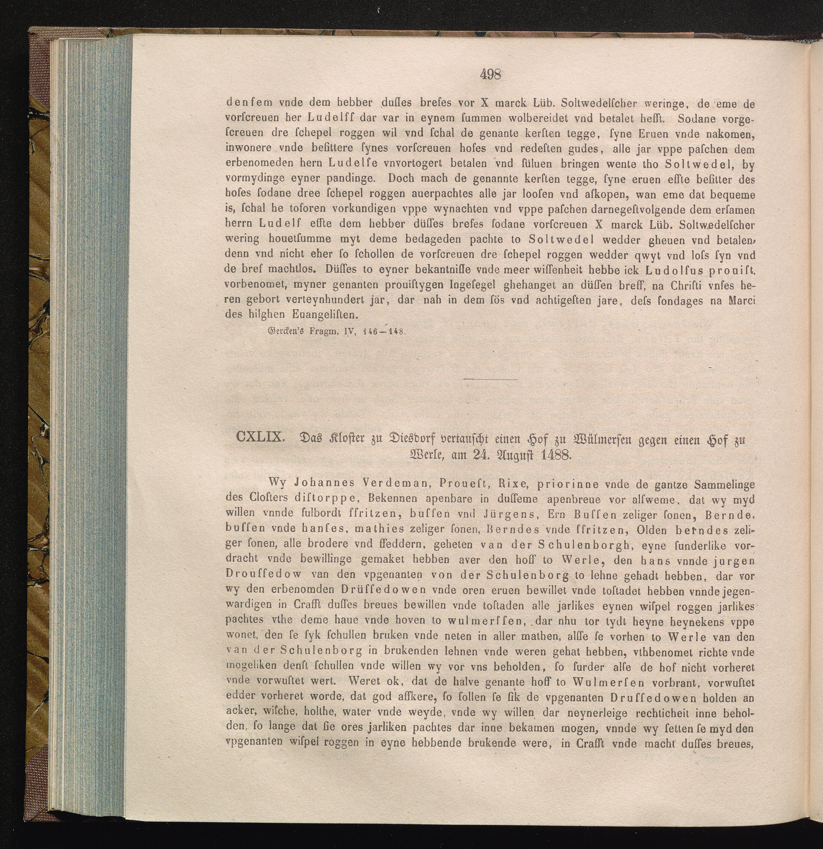 CXLIX. Das Kloster zu Diesdorf vertauscht einen Hof zu Wülmersen gegen einen Hof[...]