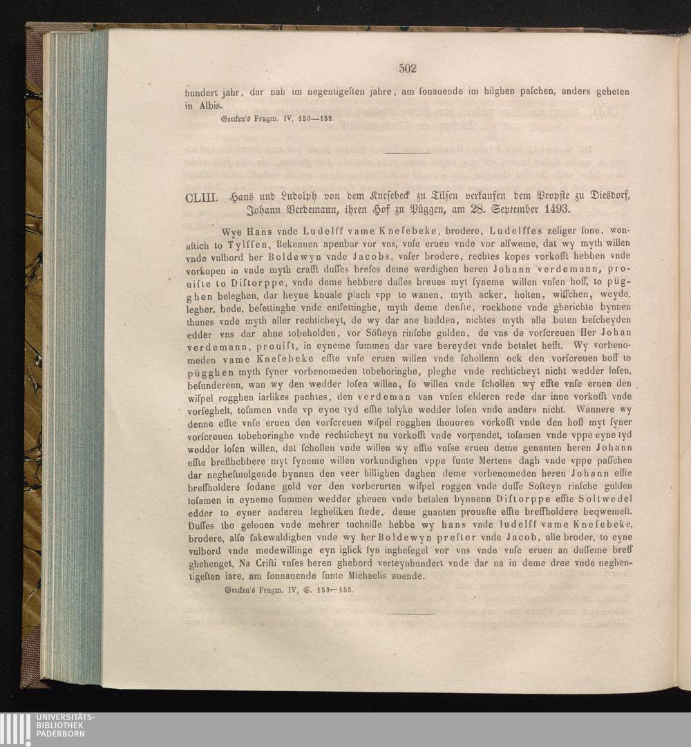 CLIII. Hans und Ludolph von dem Knesebeck zu Tilsen verkaufen dem Propste zu Diesdorf,[...]