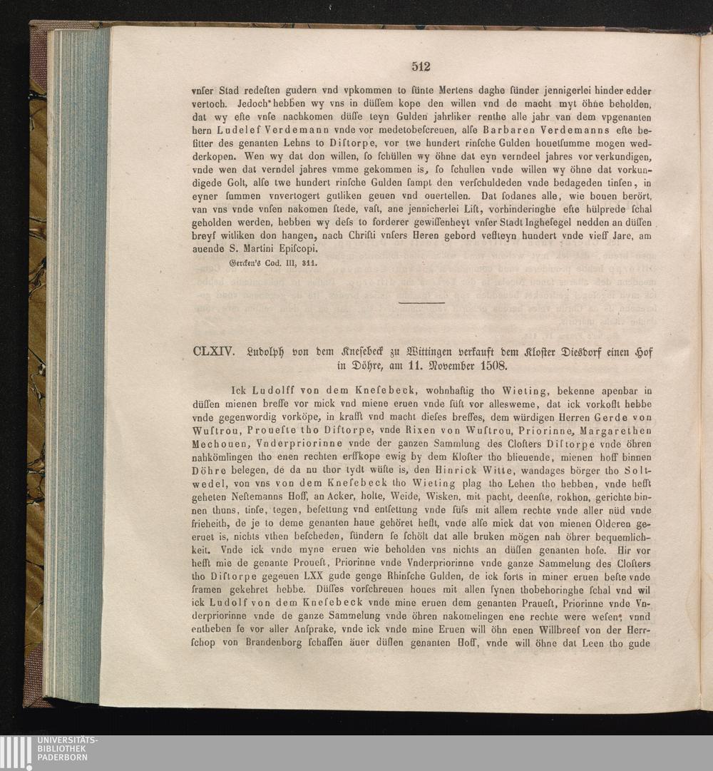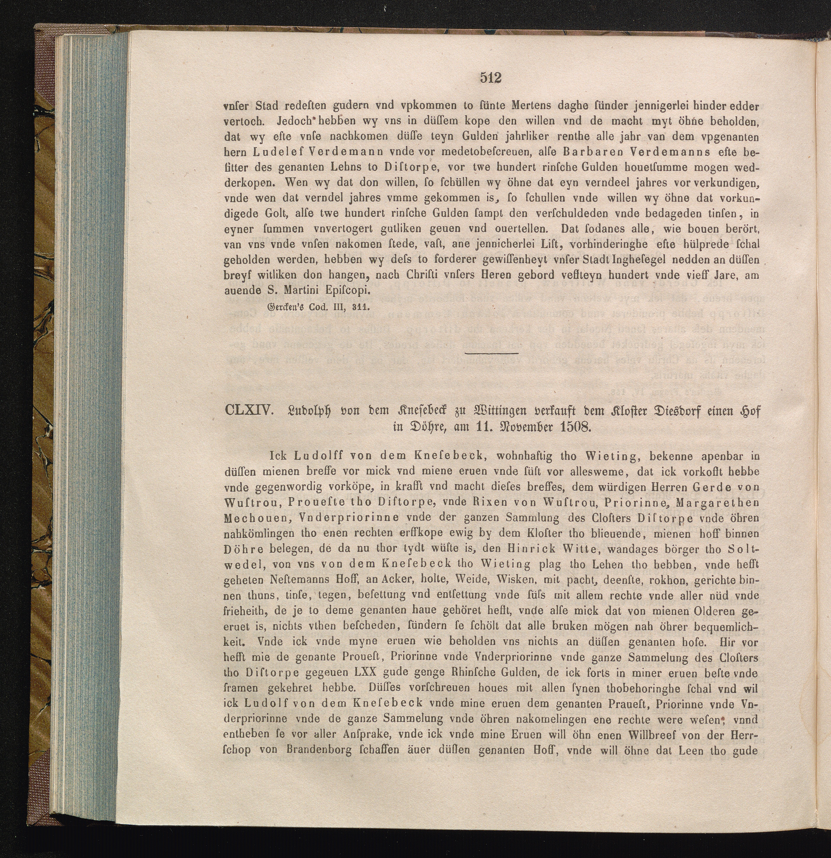 CLXIV. Ludolph von dem Knesebeck zu Wittingen verkauft dem Kloster Diesdorf einen[...]