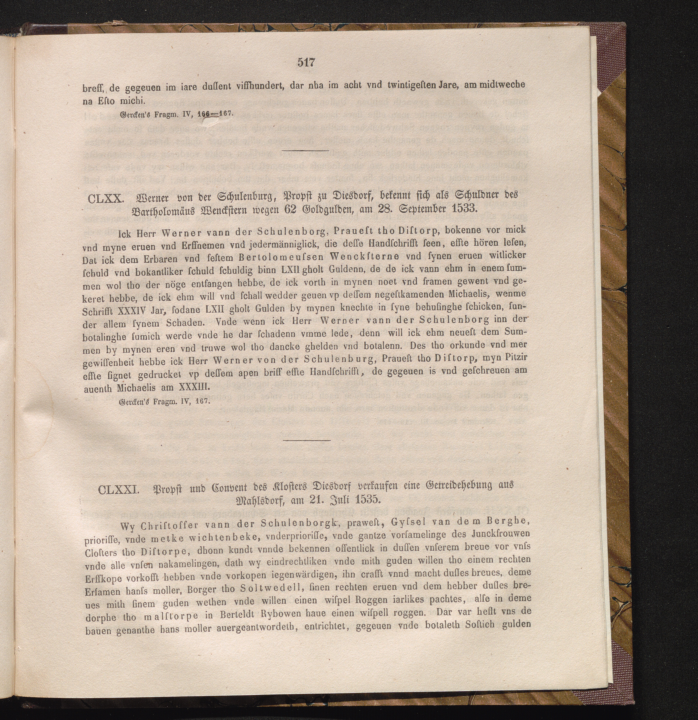 CLXXI. Propst und Convent des Klosters Diesdorf verkaufen eine Getreidehebung aus[...]