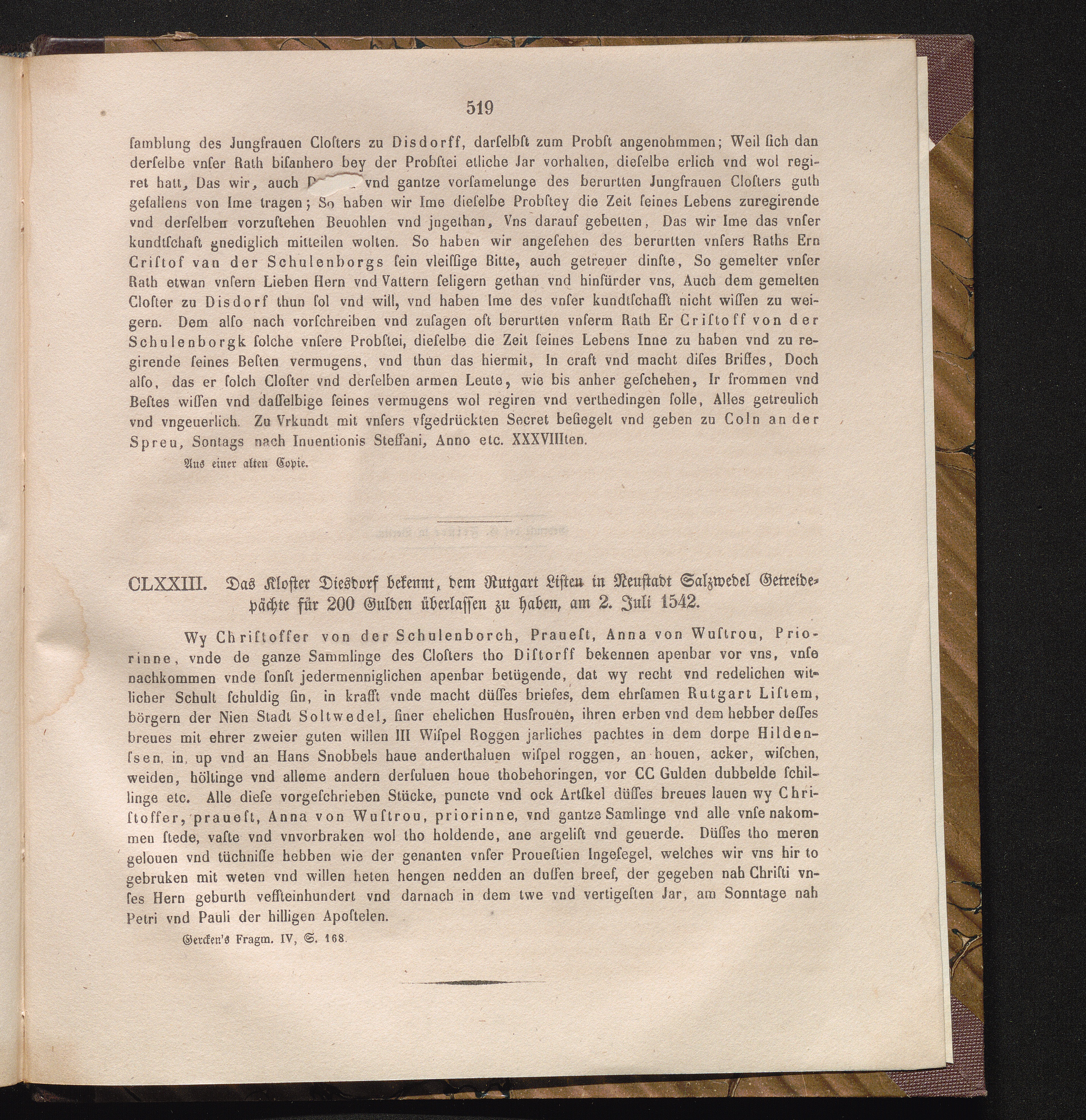 CLXXIII. Das Kloster Diesdorf bekennt, dem Rutgart Listen zu Neustadt Salzwedel Getreidepächte[...]