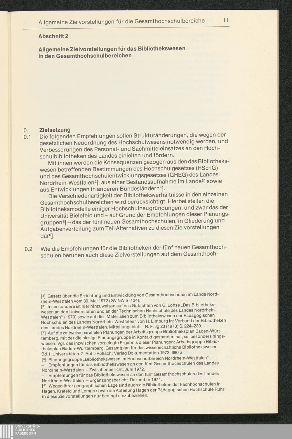 Empfehlungen für die Verbesserung der Struktur der Hochschulbibliotheken : Zielvorstellungen und Vorschläge für die Gesamthochschulbereiche des Landes Nordrhein-Westfalen / vorgelegt von der Planungsgruppe "Bibliothekswesen im Hochschulbereich Nordrhein-Westfalen"