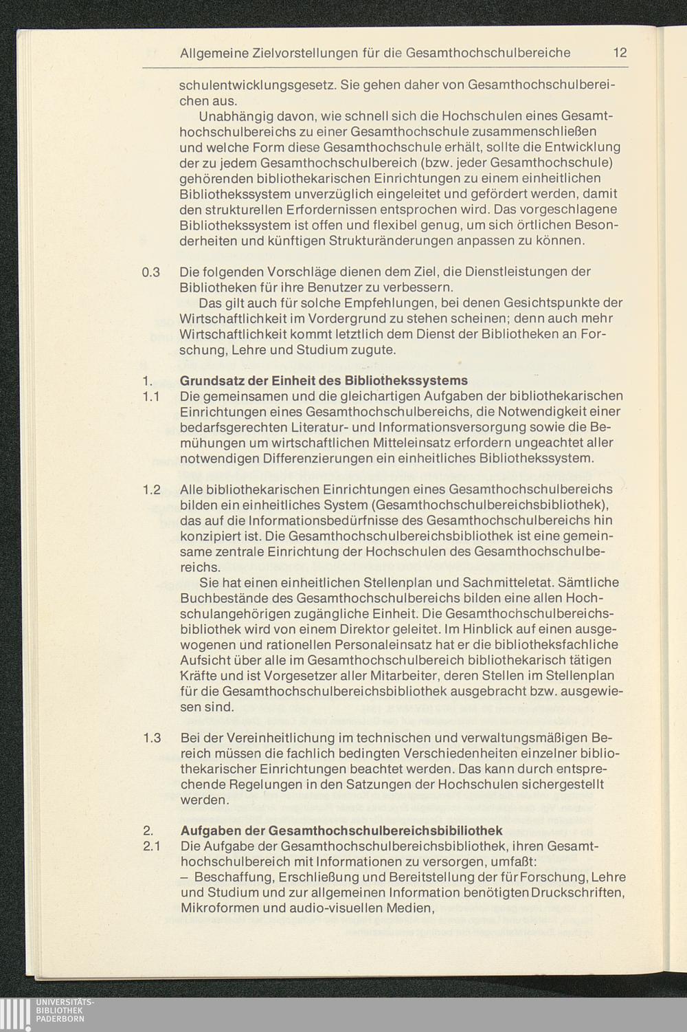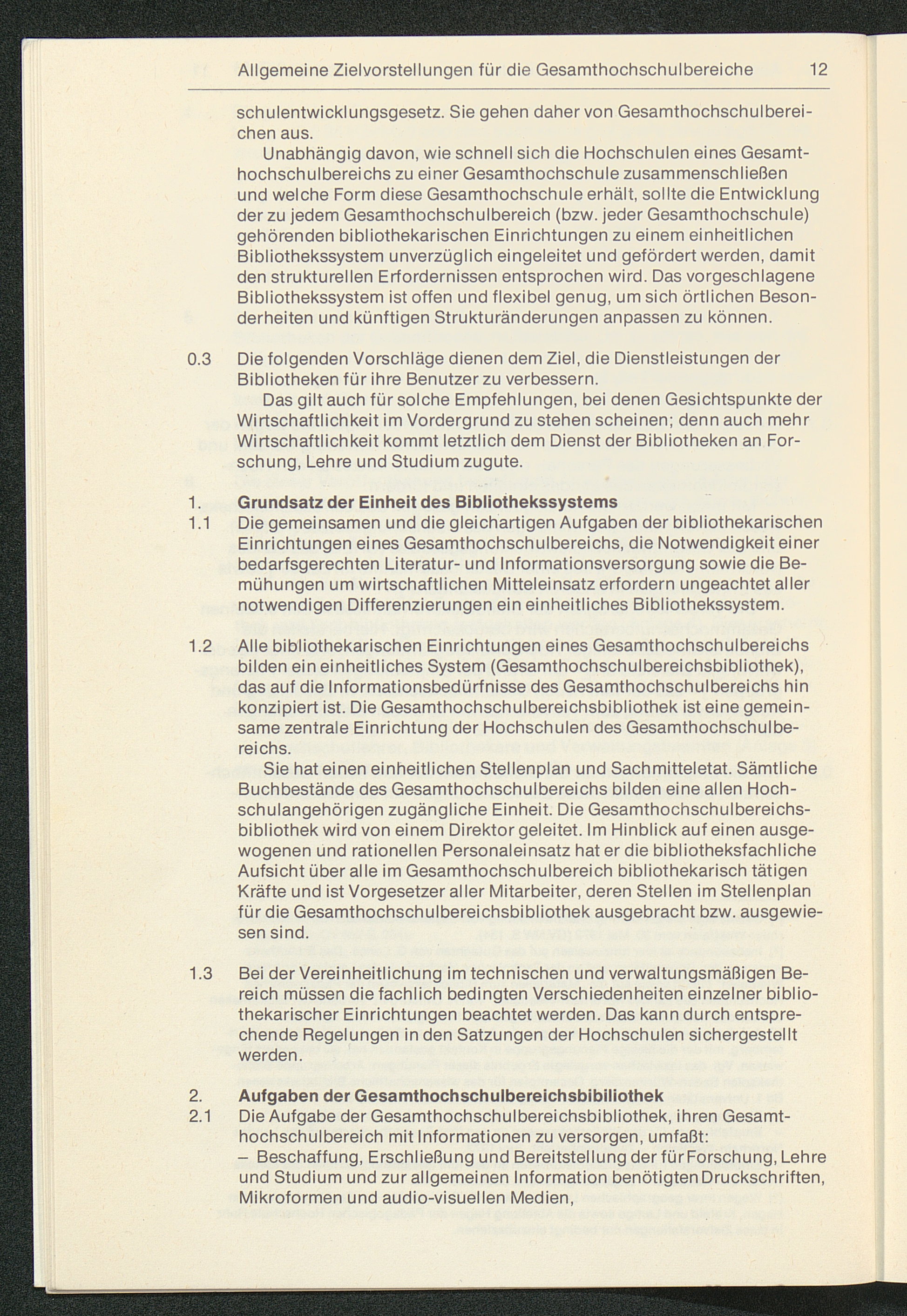 Empfehlungen für die Verbesserung der Struktur der Hochschulbibliotheken : Zielvorstellungen und Vorschläge für die Gesamthochschulbereiche des Landes Nordrhein-Westfalen / vorgelegt von der Planungsgruppe "Bibliothekswesen im Hochschulbereich Nordrhein-Westfalen"