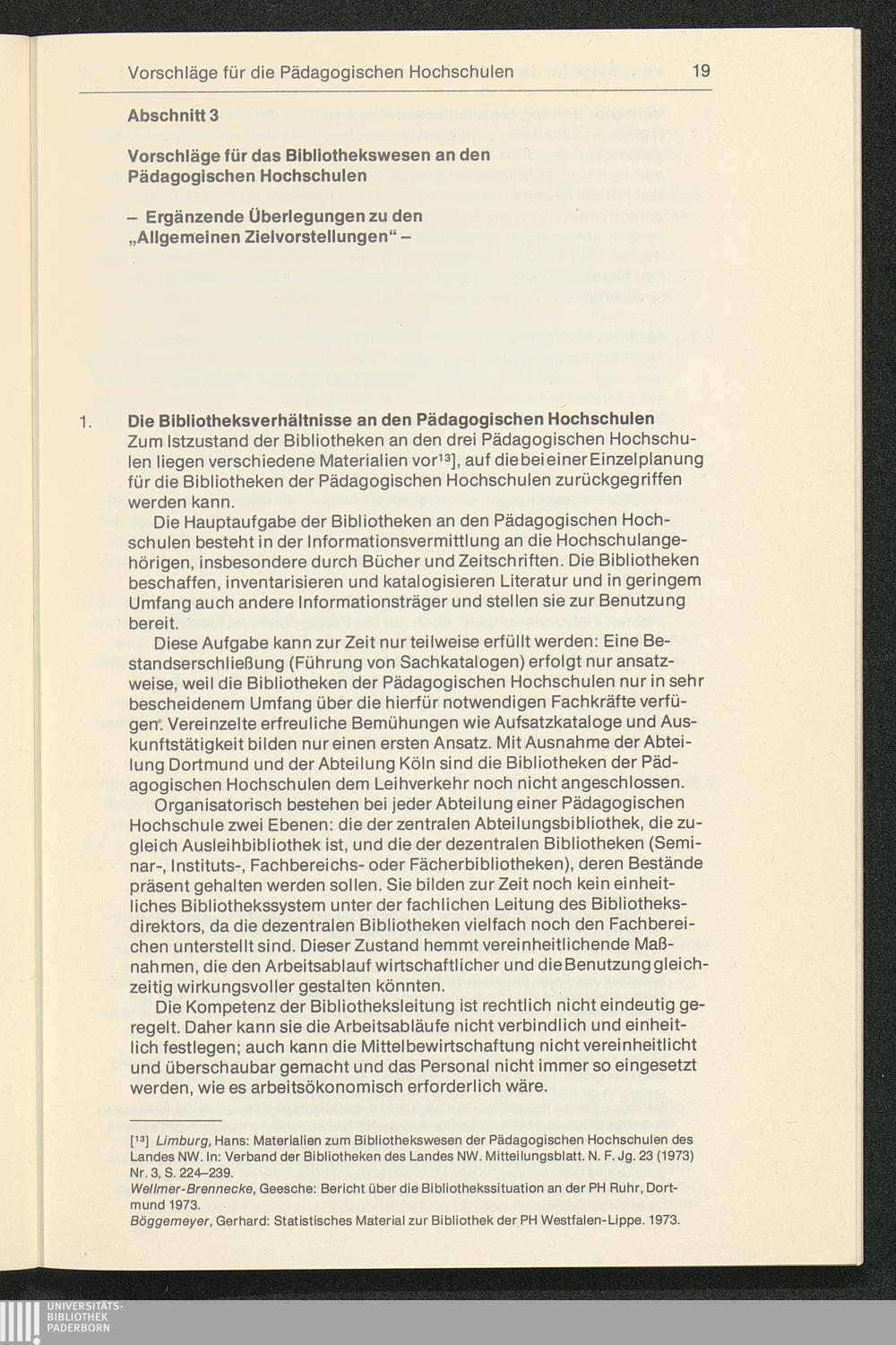 Empfehlungen für die Verbesserung der Struktur der Hochschulbibliotheken : Zielvorstellungen und Vorschläge für die Gesamthochschulbereiche des Landes Nordrhein-Westfalen / vorgelegt von der Planungsgruppe "Bibliothekswesen im Hochschulbereich Nordrhein-Westfalen"