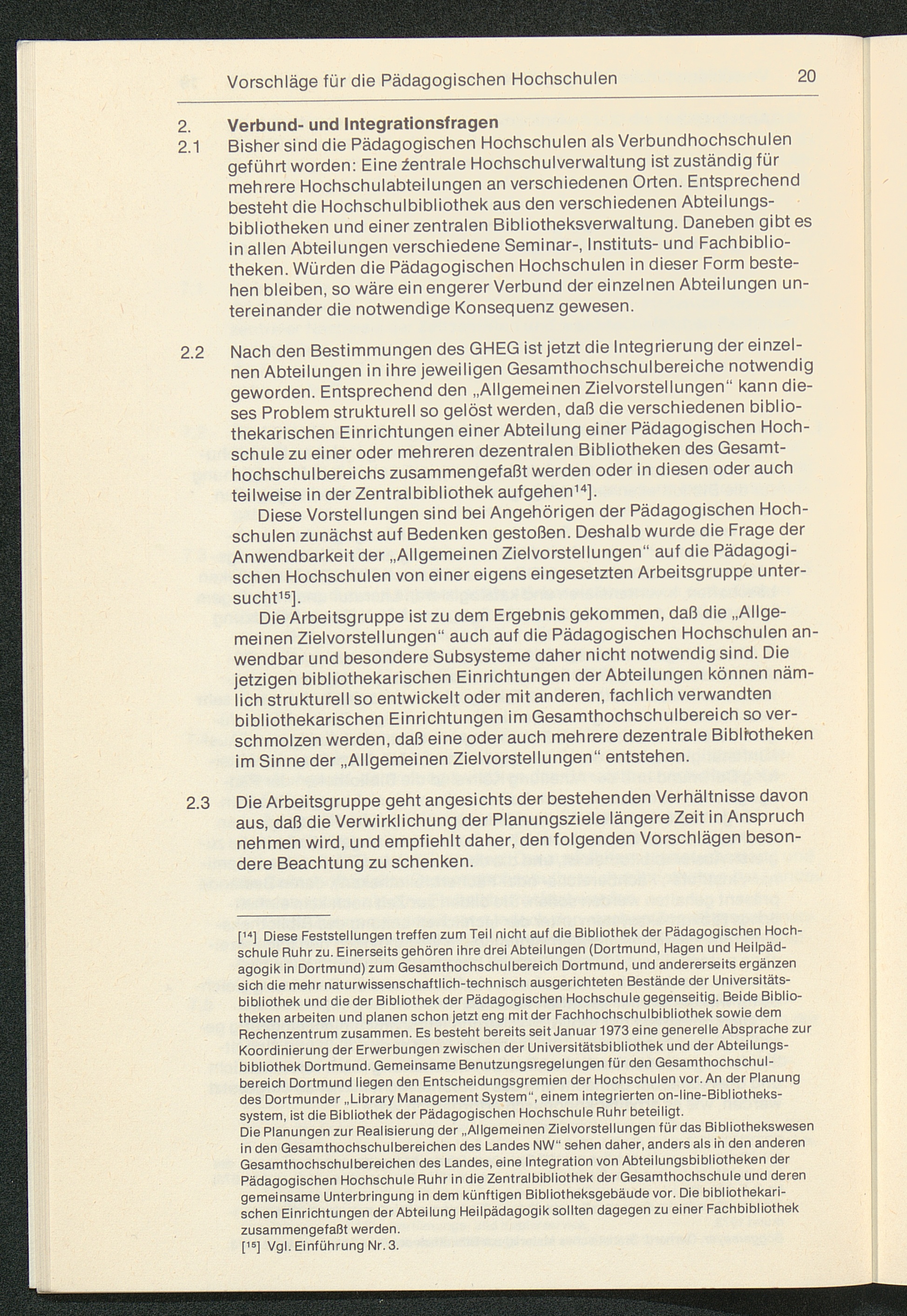 Empfehlungen für die Verbesserung der Struktur der Hochschulbibliotheken : Zielvorstellungen und Vorschläge für die Gesamthochschulbereiche des Landes Nordrhein-Westfalen / vorgelegt von der Planungsgruppe "Bibliothekswesen im Hochschulbereich Nordrhein-Westfalen"