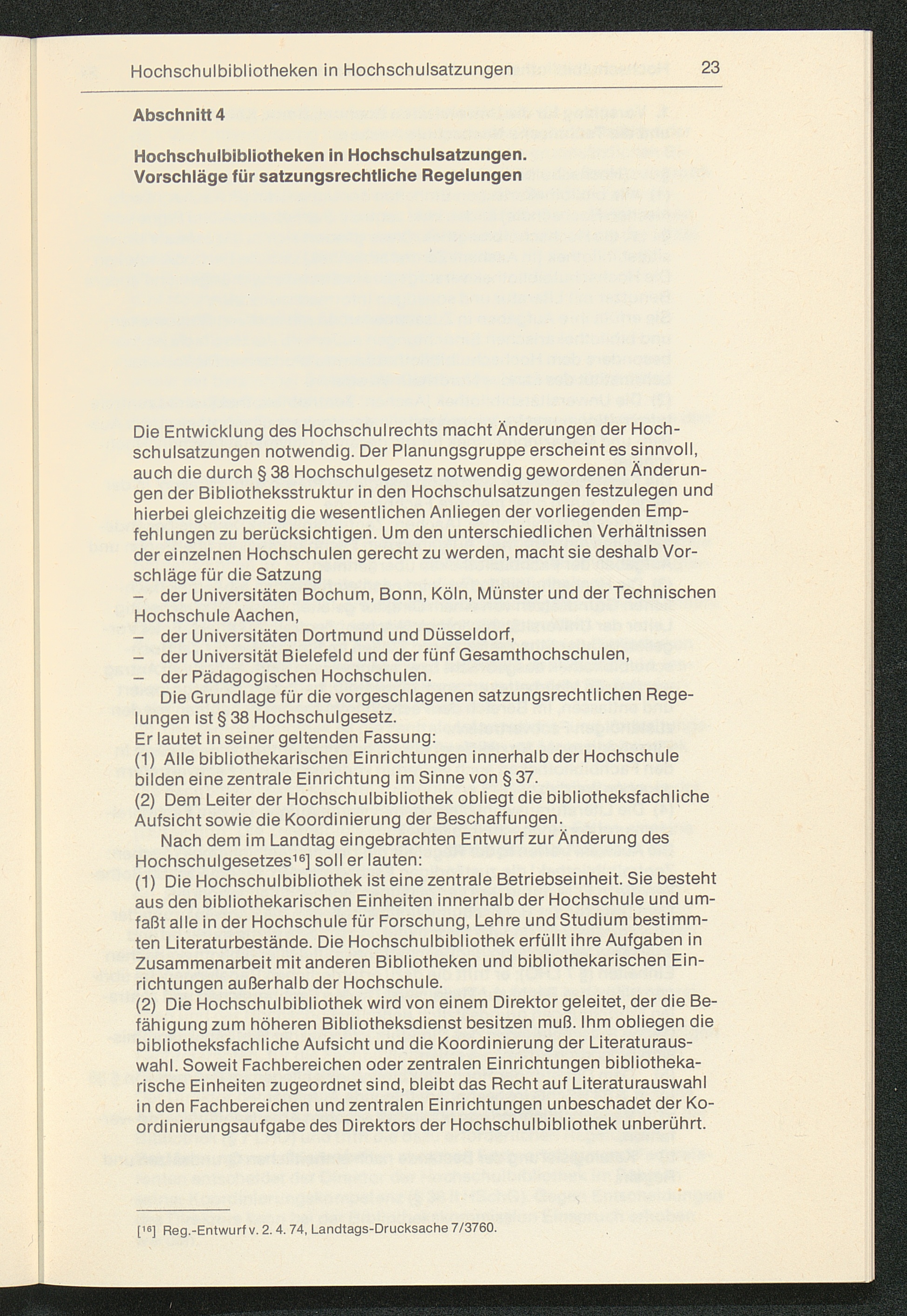 Empfehlungen für die Verbesserung der Struktur der Hochschulbibliotheken : Zielvorstellungen und Vorschläge für die Gesamthochschulbereiche des Landes Nordrhein-Westfalen / vorgelegt von der Planungsgruppe "Bibliothekswesen im Hochschulbereich Nordrhein-Westfalen"