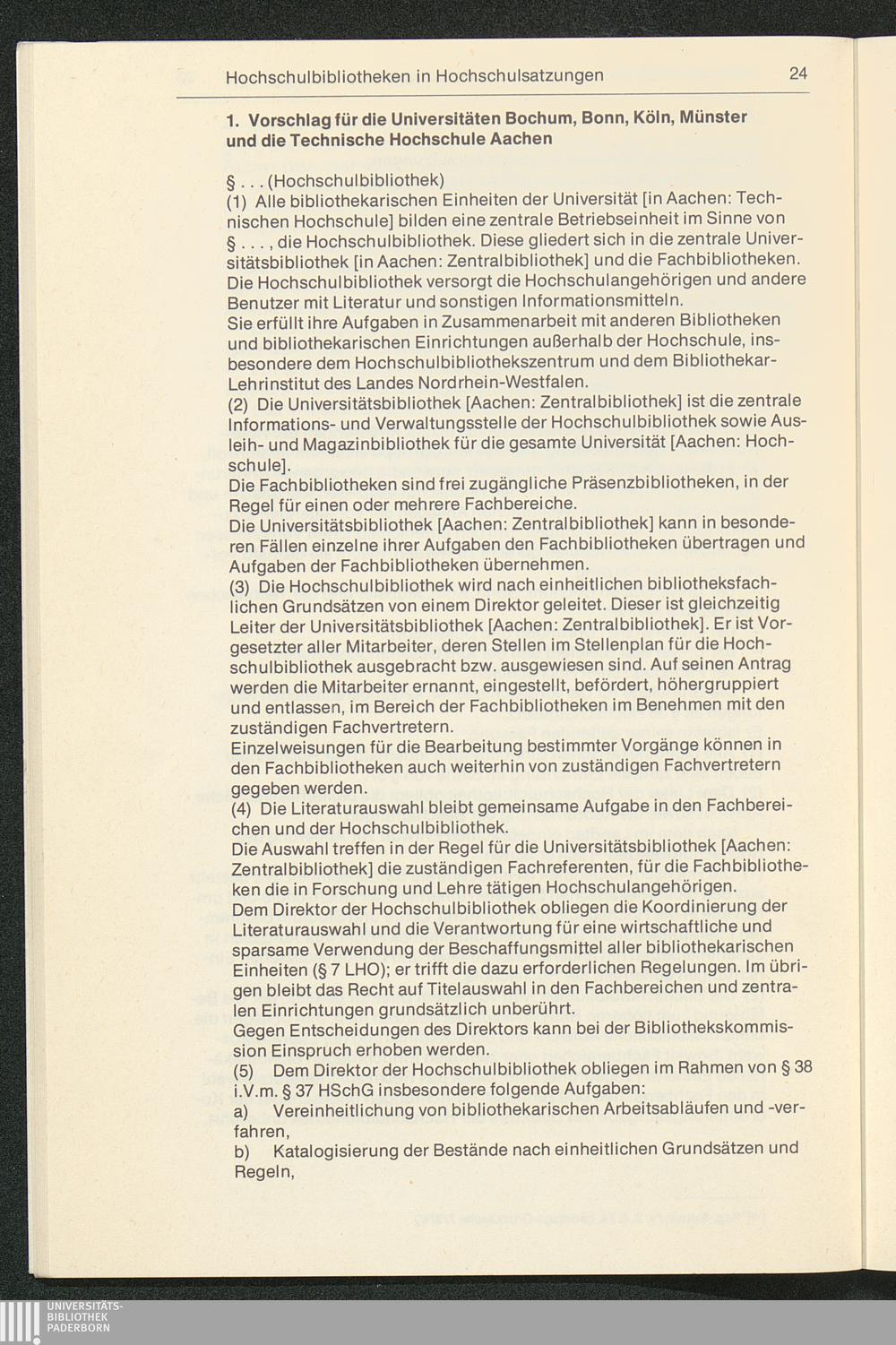 Empfehlungen für die Verbesserung der Struktur der Hochschulbibliotheken : Zielvorstellungen und Vorschläge für die Gesamthochschulbereiche des Landes Nordrhein-Westfalen / vorgelegt von der Planungsgruppe "Bibliothekswesen im Hochschulbereich Nordrhein-Westfalen"
