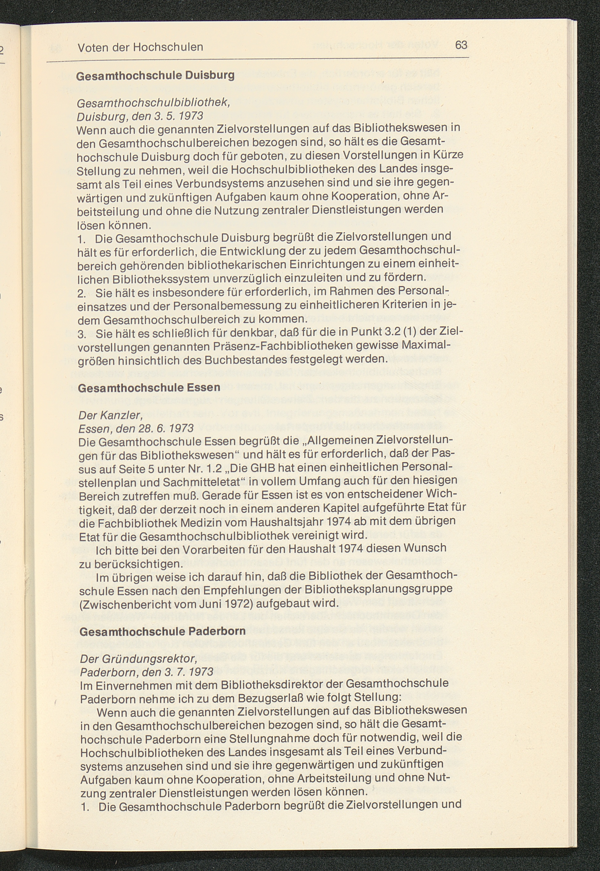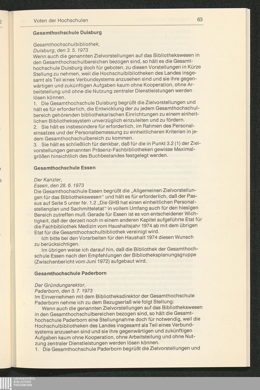 Empfehlungen für die Verbesserung der Struktur der Hochschulbibliotheken : Zielvorstellungen und Vorschläge für die Gesamthochschulbereiche des Landes Nordrhein-Westfalen / vorgelegt von der Planungsgruppe "Bibliothekswesen im Hochschulbereich Nordrhein-Westfalen"