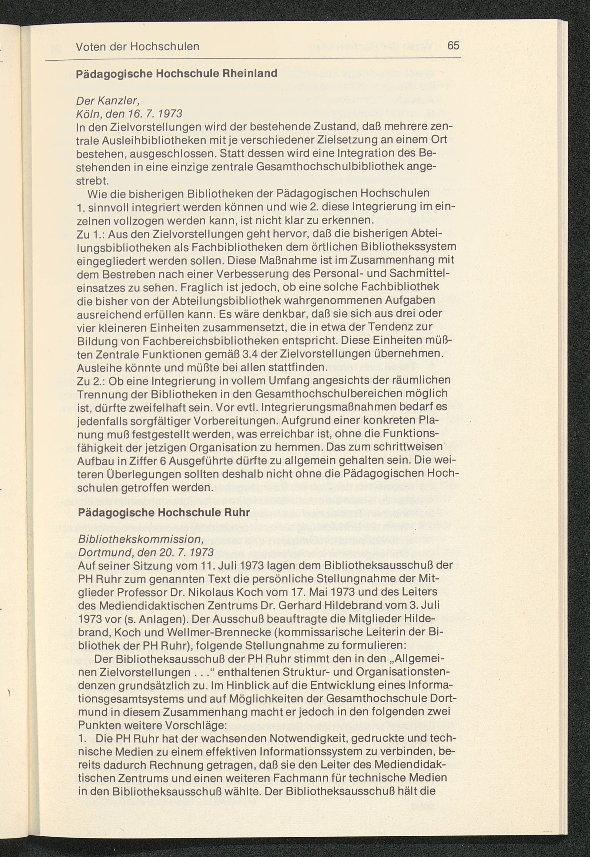 Empfehlungen für die Verbesserung der Struktur der Hochschulbibliotheken : Zielvorstellungen und Vorschläge für die Gesamthochschulbereiche des Landes Nordrhein-Westfalen / vorgelegt von der Planungsgruppe "Bibliothekswesen im Hochschulbereich Nordrhein-Westfalen"