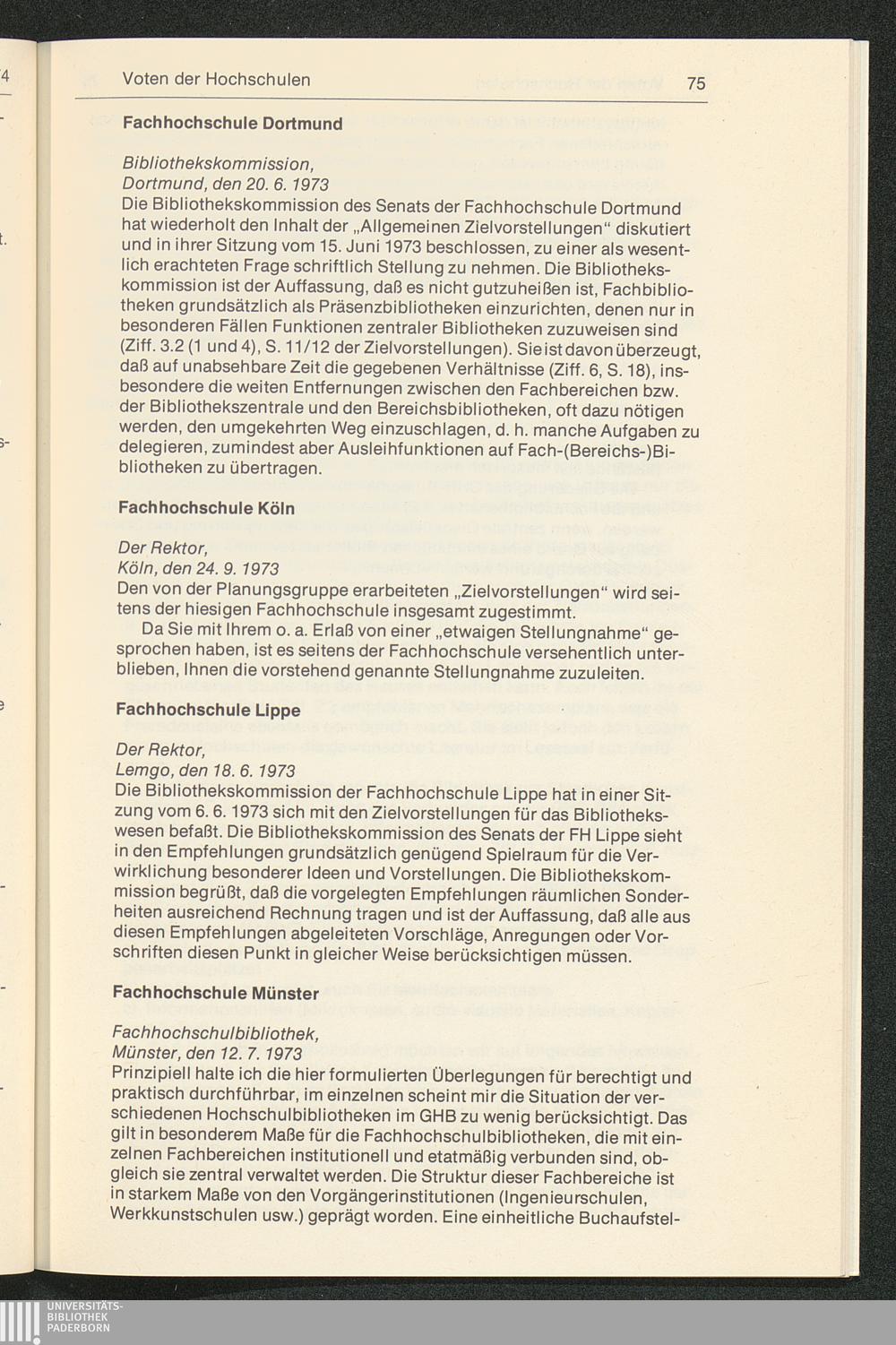 Empfehlungen für die Verbesserung der Struktur der Hochschulbibliotheken : Zielvorstellungen und Vorschläge für die Gesamthochschulbereiche des Landes Nordrhein-Westfalen / vorgelegt von der Planungsgruppe "Bibliothekswesen im Hochschulbereich Nordrhein-Westfalen"