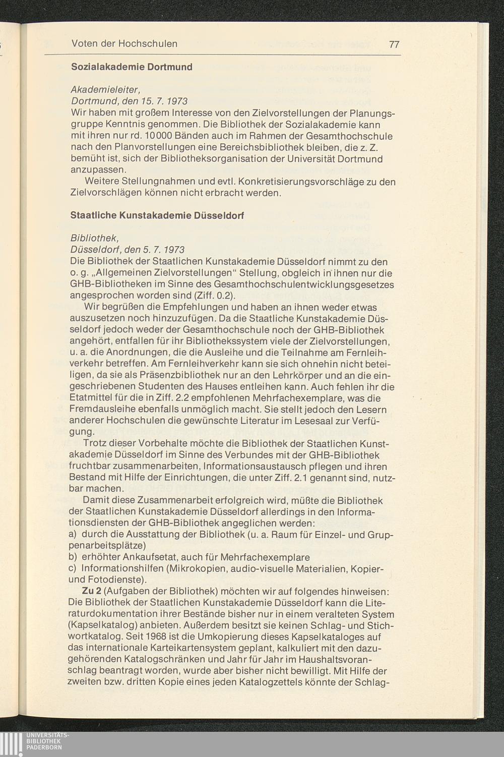 Empfehlungen für die Verbesserung der Struktur der Hochschulbibliotheken : Zielvorstellungen und Vorschläge für die Gesamthochschulbereiche des Landes Nordrhein-Westfalen / vorgelegt von der Planungsgruppe "Bibliothekswesen im Hochschulbereich Nordrhein-Westfalen"