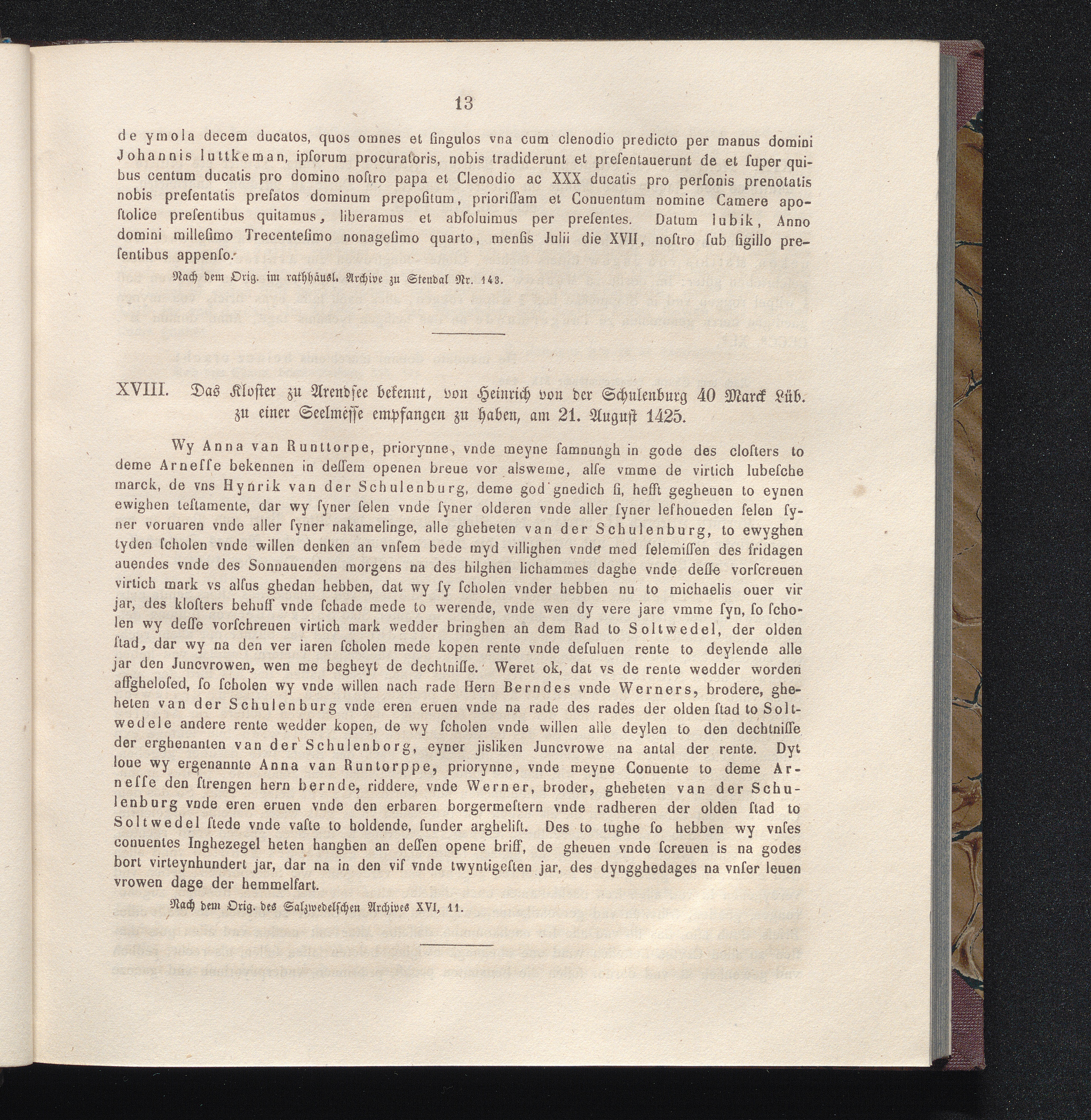 XVIII. Das Kloster zu Arendsee bekennt, von Heinrich von der Schulenburg 40 Marck[...]