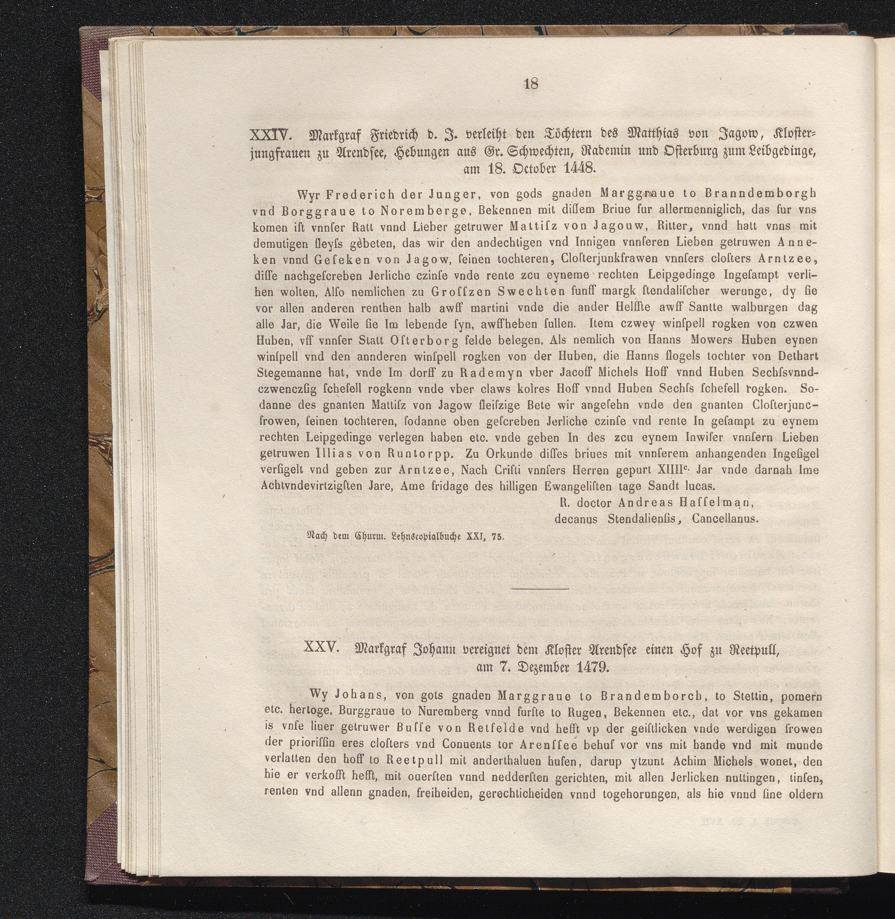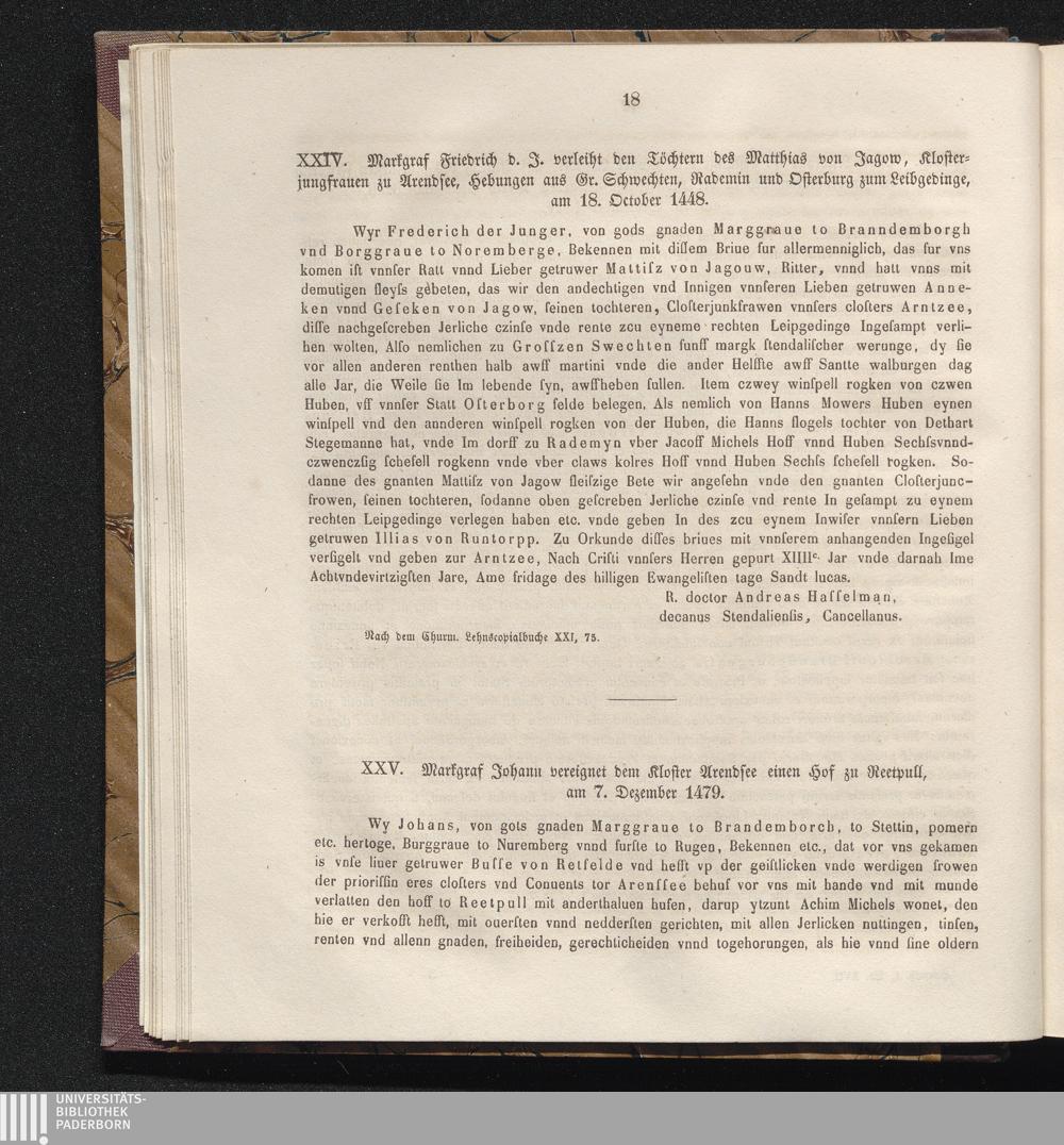 XXV. Markgraf Johann vereignet dem Kloster Arendsee einen Hof zu Reetpull, am 7.[...]