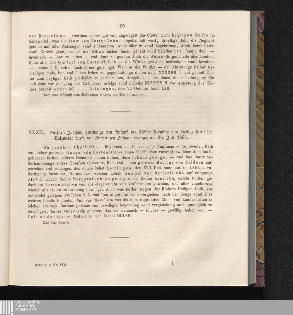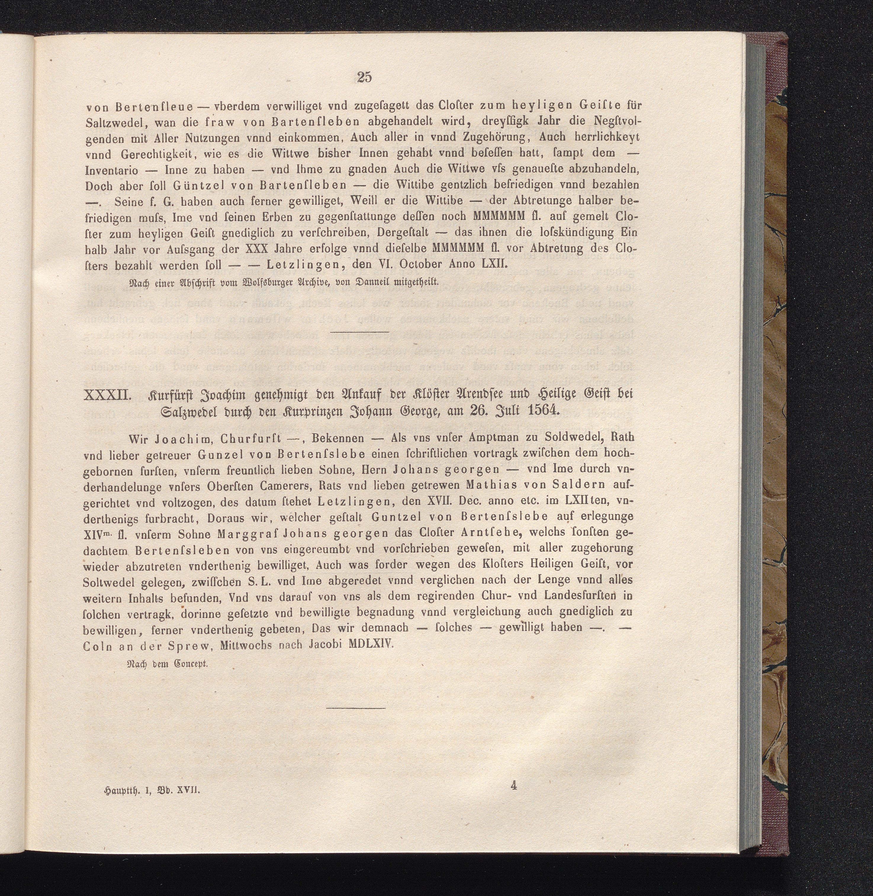 XXXII. Kurfürst Joachim genehmigt den Ankauf der Klöster Arendsee und Heilige Geist[...]