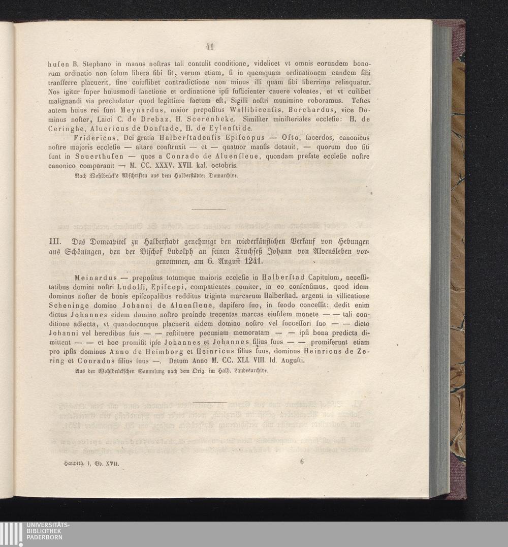 III. Das Domcapitel zu Halberstadt genehmigt den wiederkäuflichen Verkauf von Hebungen[...]