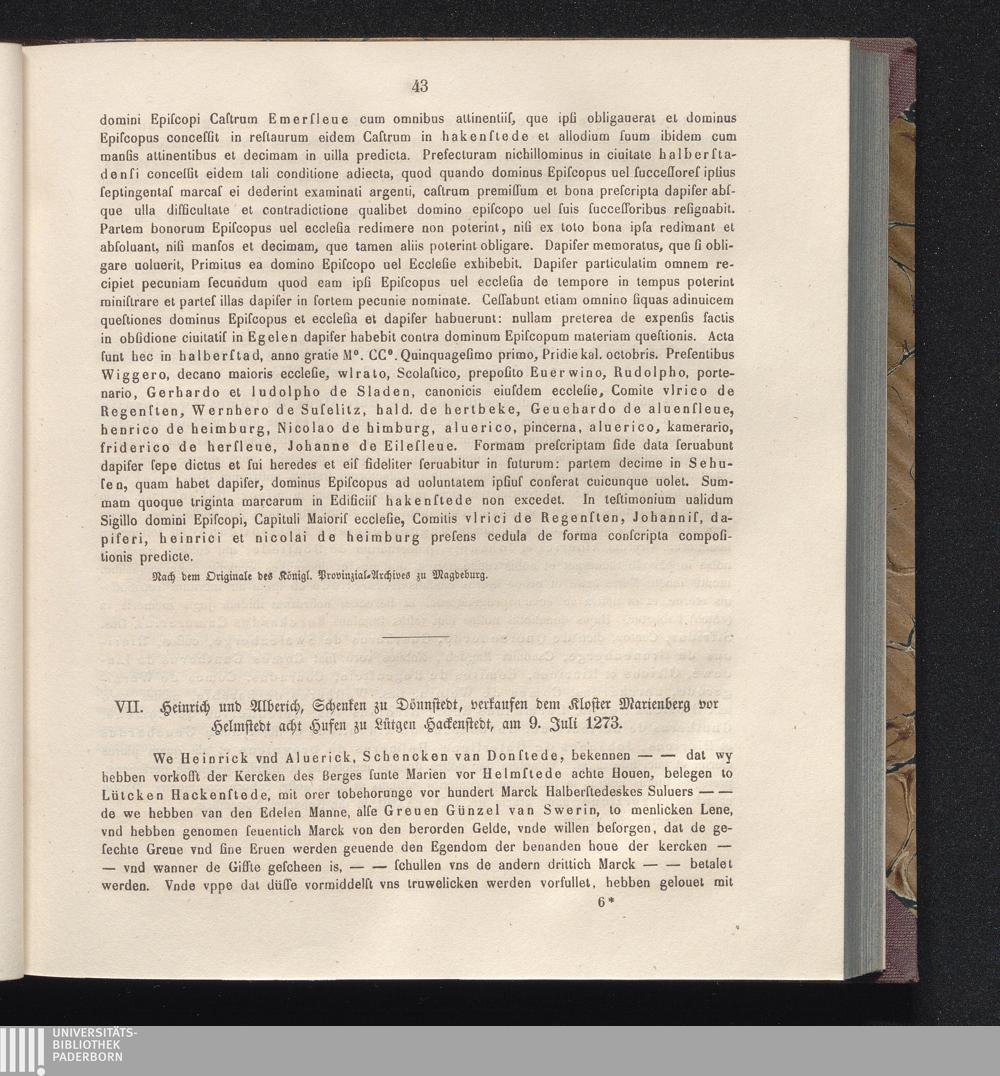 VII. Heinrich und Alberich, Schenken zu Dönnstedt, verkaufen dem Kloster Marienburg[...]