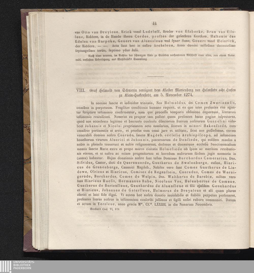 VIII. Graf Helmold von Schwerin vereignet dem Kloster Marienburg vor Helmstedt acht[...]