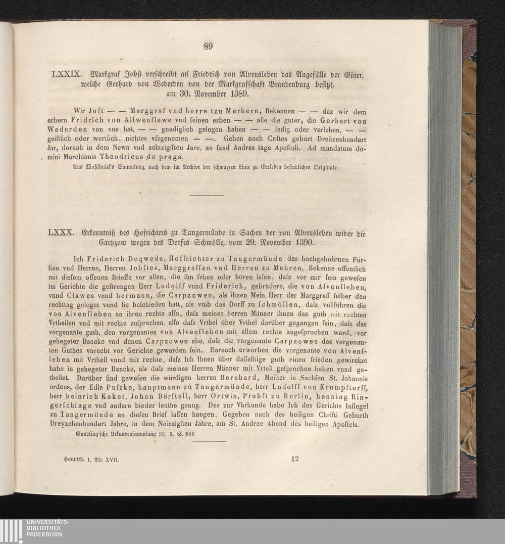 LXXX. Erkenntniß des Hofrichters zu Tangermünde in Sachen der von Alvensleben wider[...]