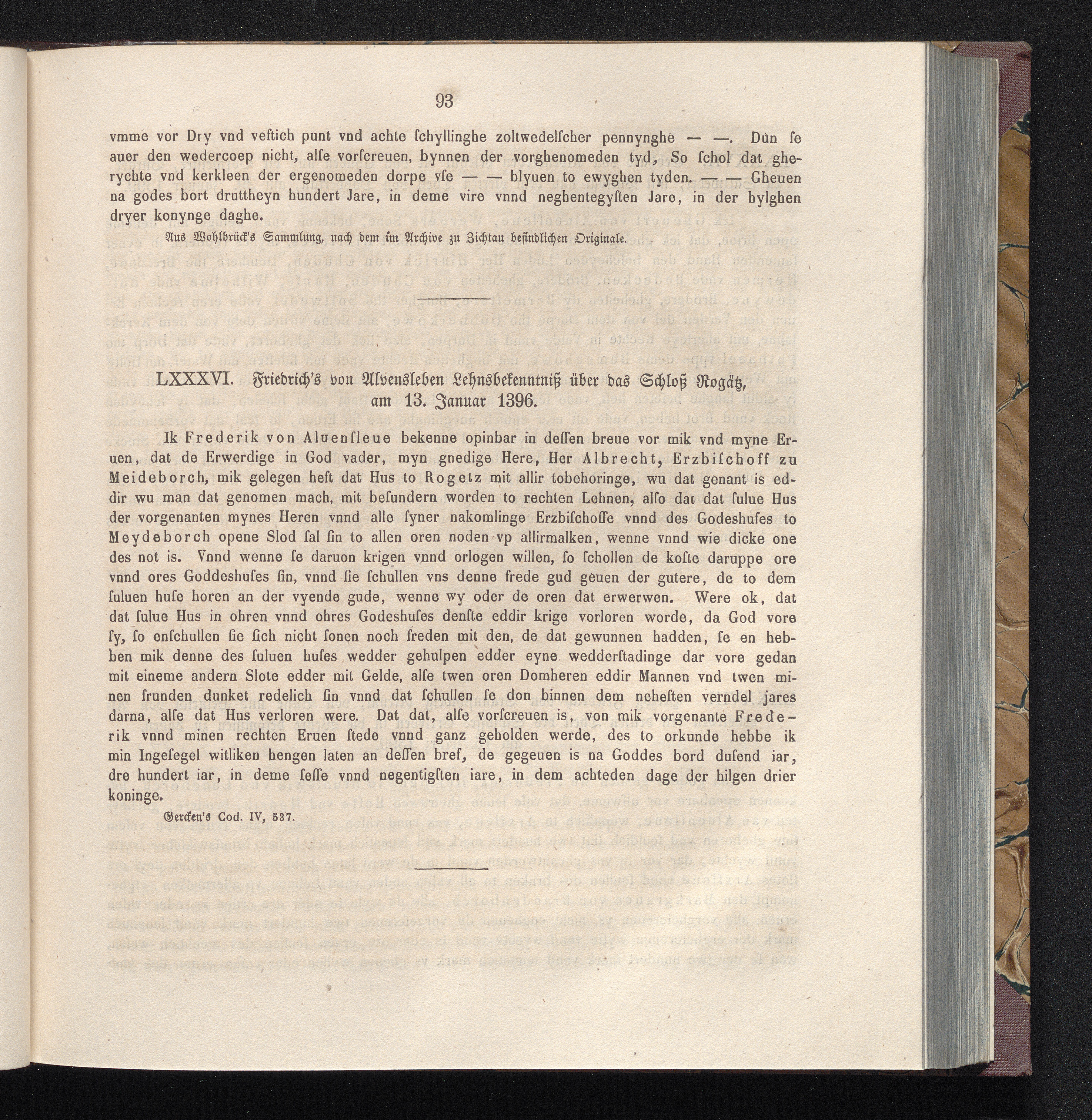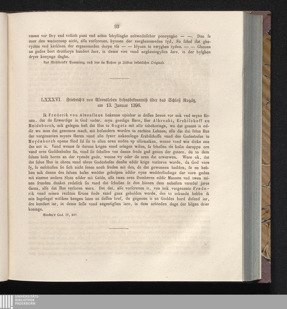 LXXXVI. Friedrich’s von Alvensleben Lehnsbekenntniß über das Schloß Rogätz, am 13.[...]
