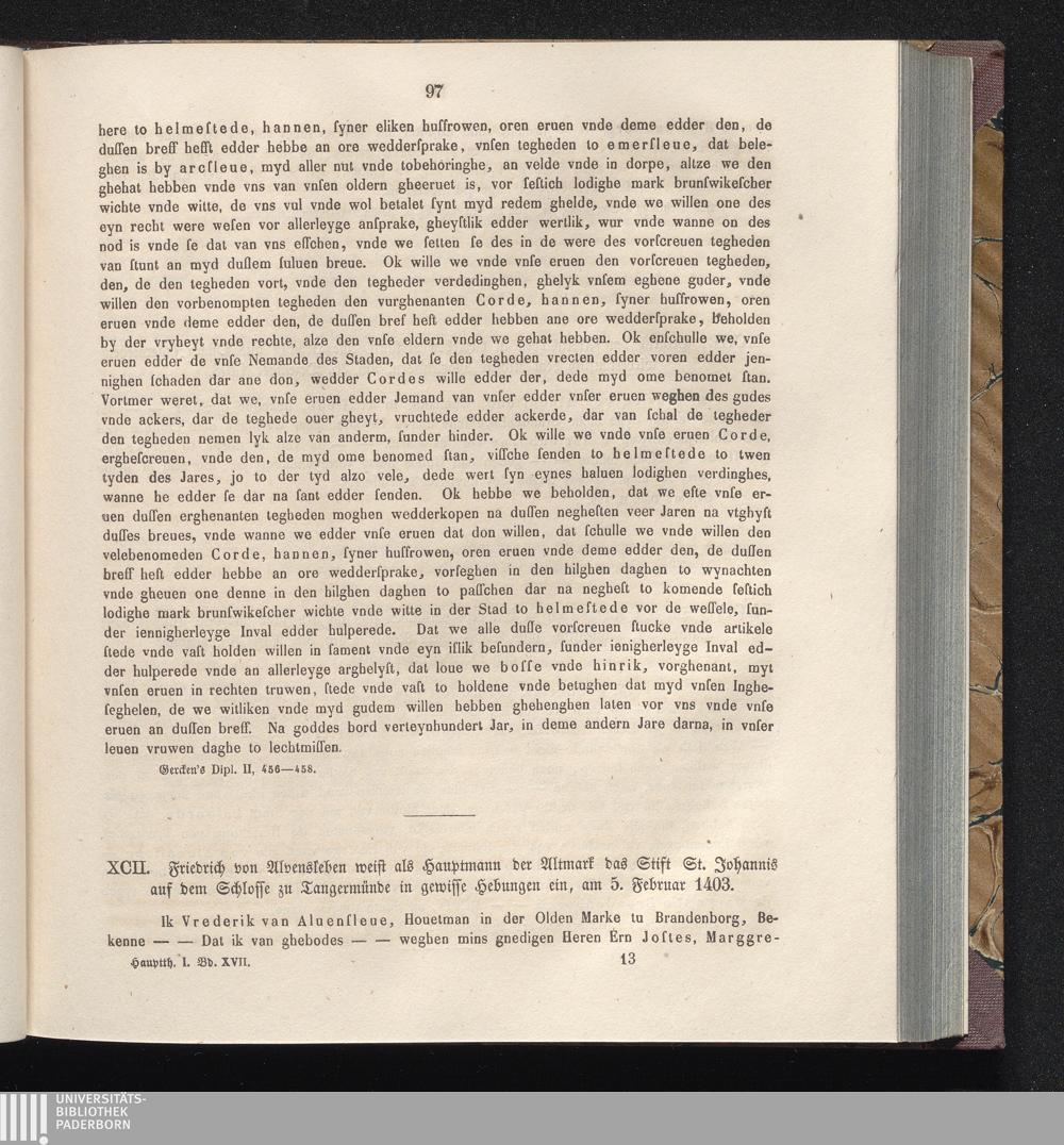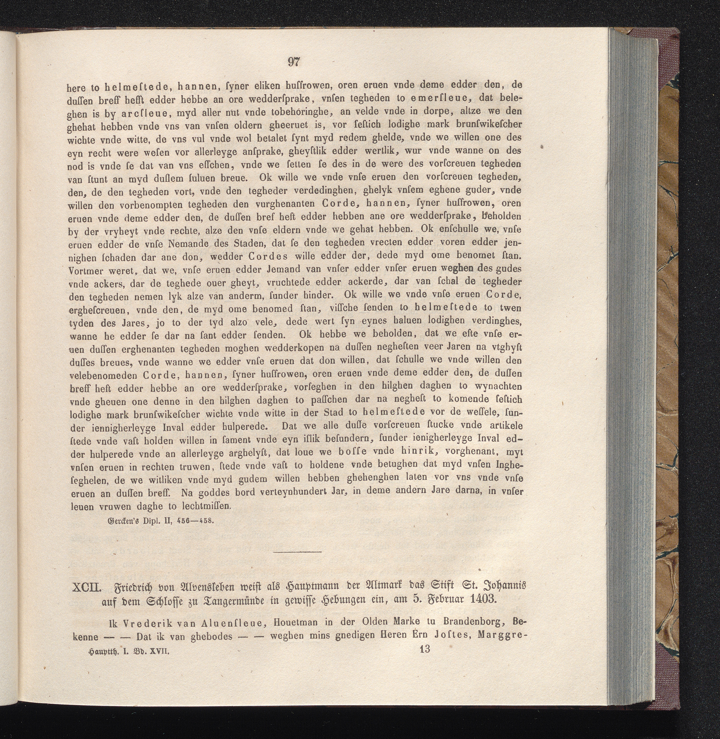 XCII. Friedrich von Alvensleben weist als Hauptmann der Altmark das Stift St. Johannis[...]