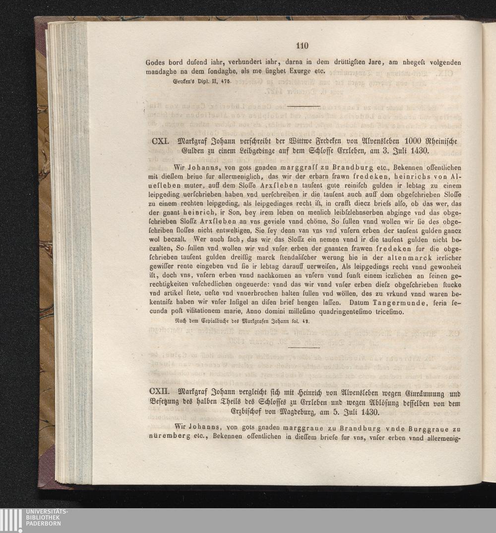 CXII. Markgraf Johann vergleicht sich mit Heinrich von Alvensleben wegen Einräumung[...]