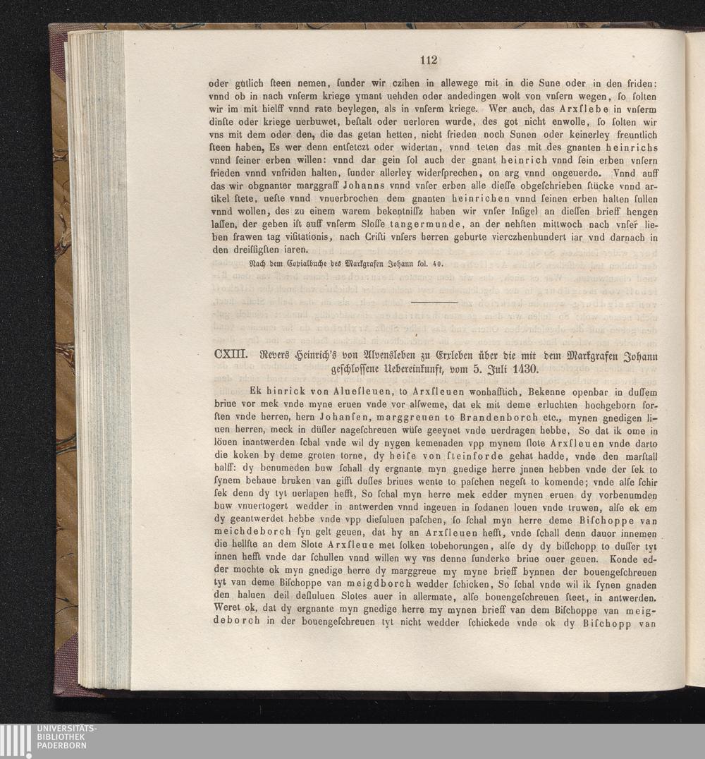 CXIII. Revers Heinrich’s von Alvensleben zu Errleben über die mit dem Markgrafen[...]