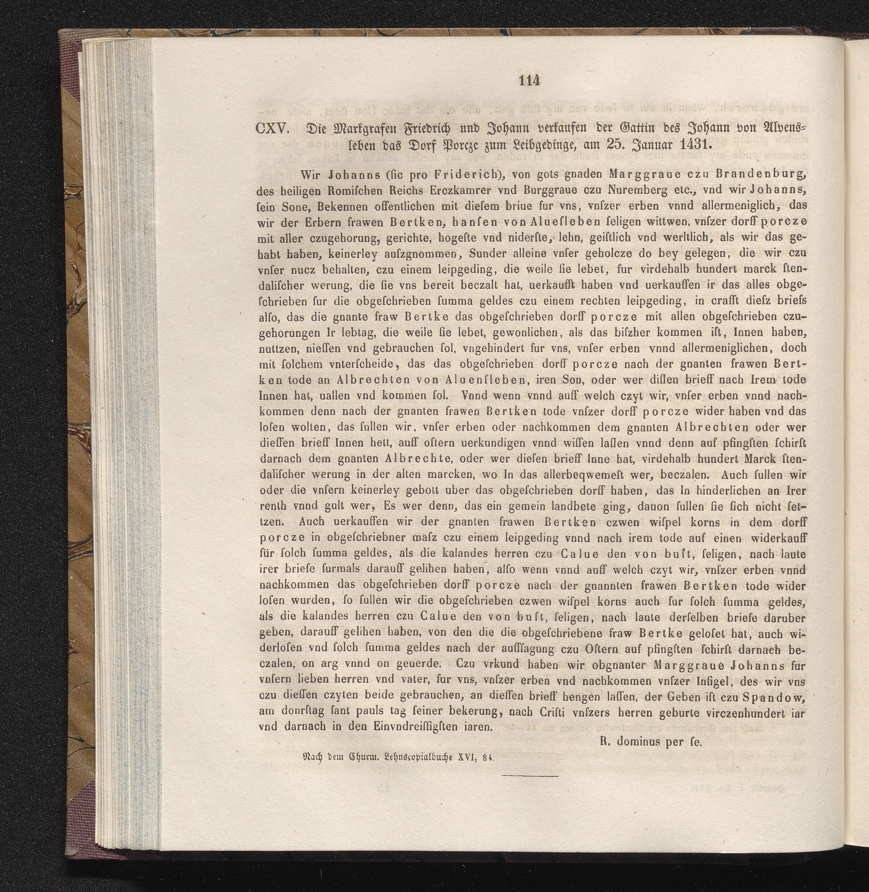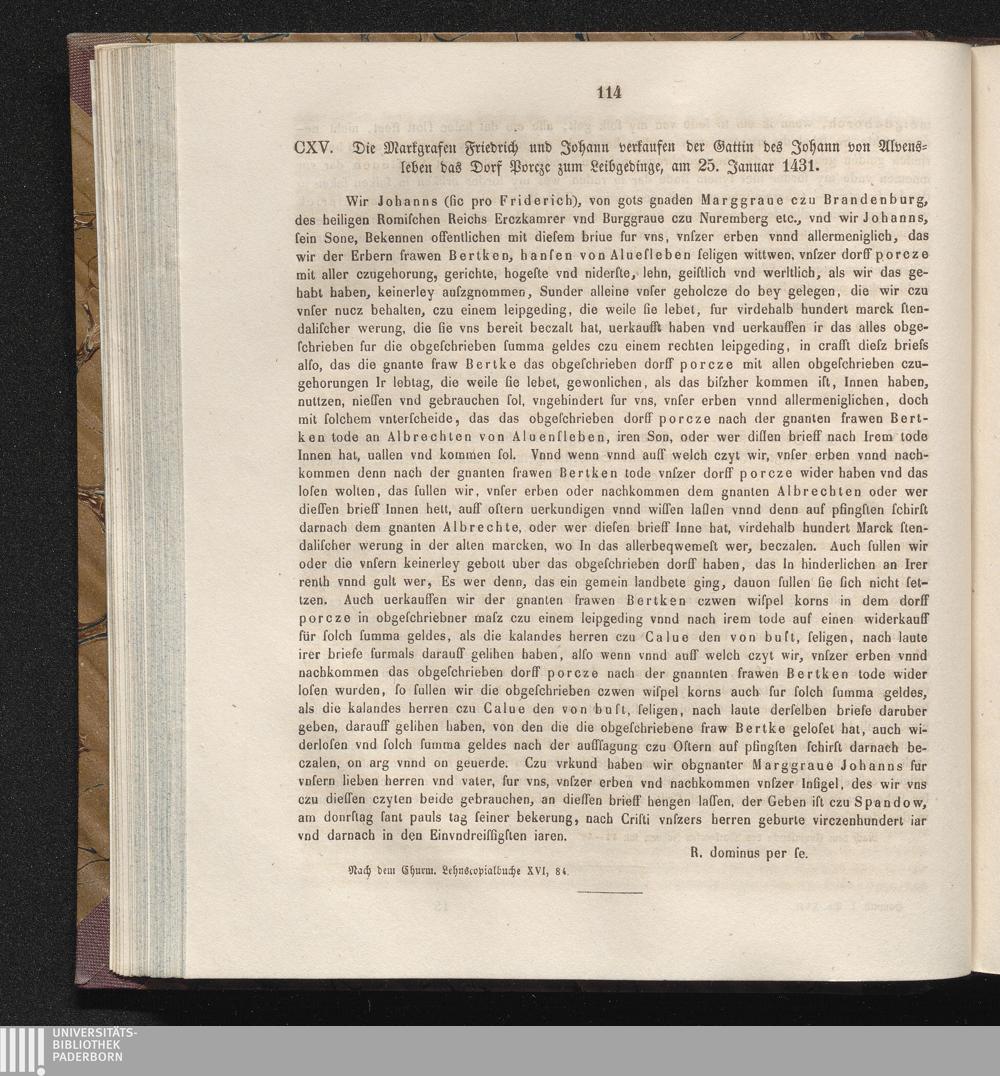 CXV. Die Markgrafen Friedrich und Johann verkaufen der Gattin des Johann von Alvensleben[...]