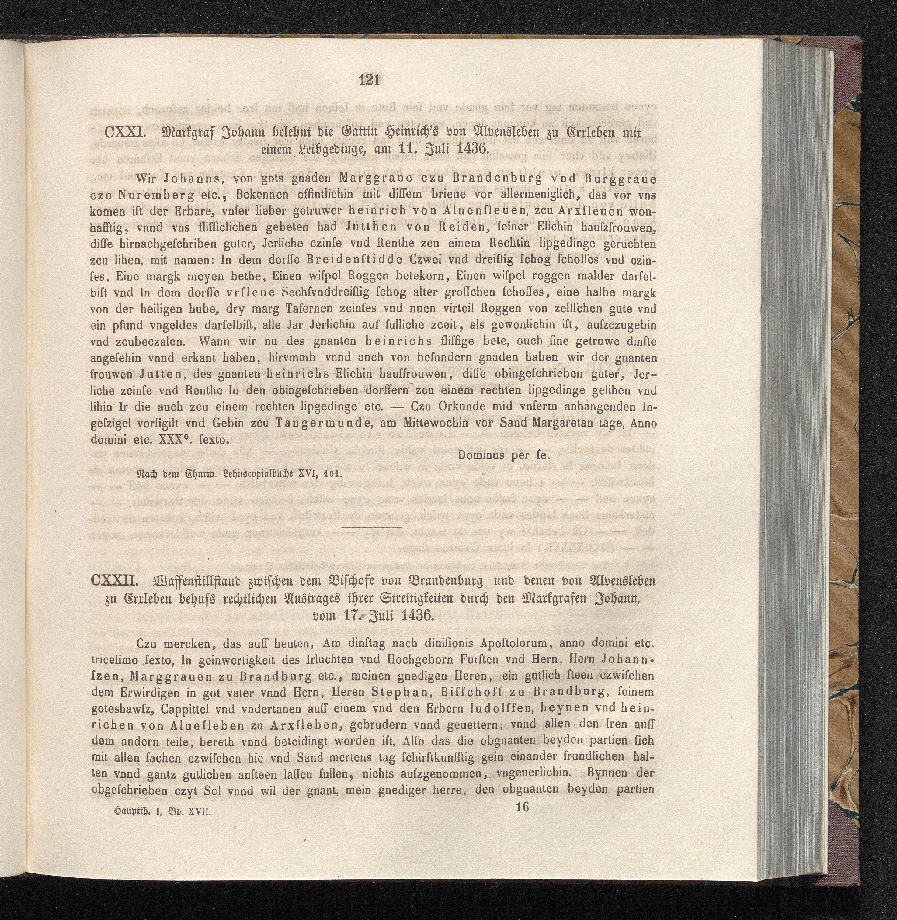 CXXII. Waffenstillstand zwischen dem Bischofe von Brandenburg und denen von Alvensleben[...]