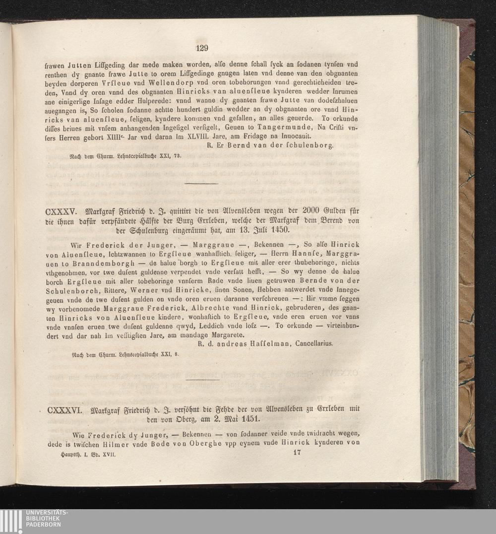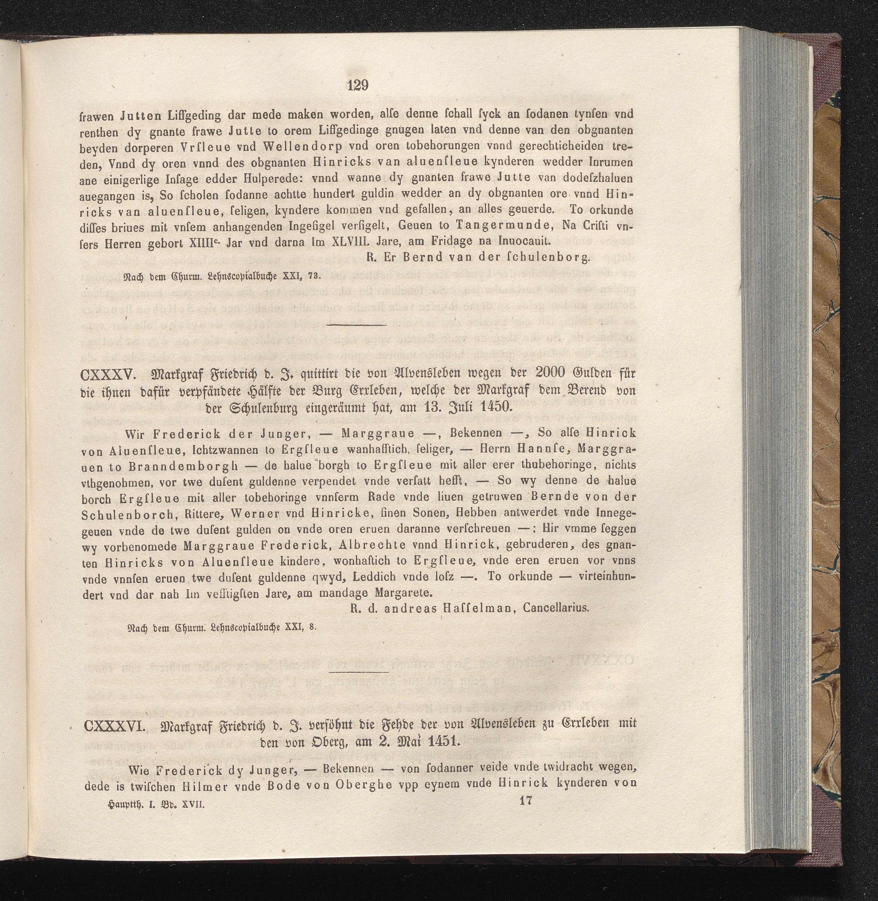 CXXXVI. Markgraf Friedrich d. J. versöhnt die Fehde der von Alvensleben zu Errleben[...]