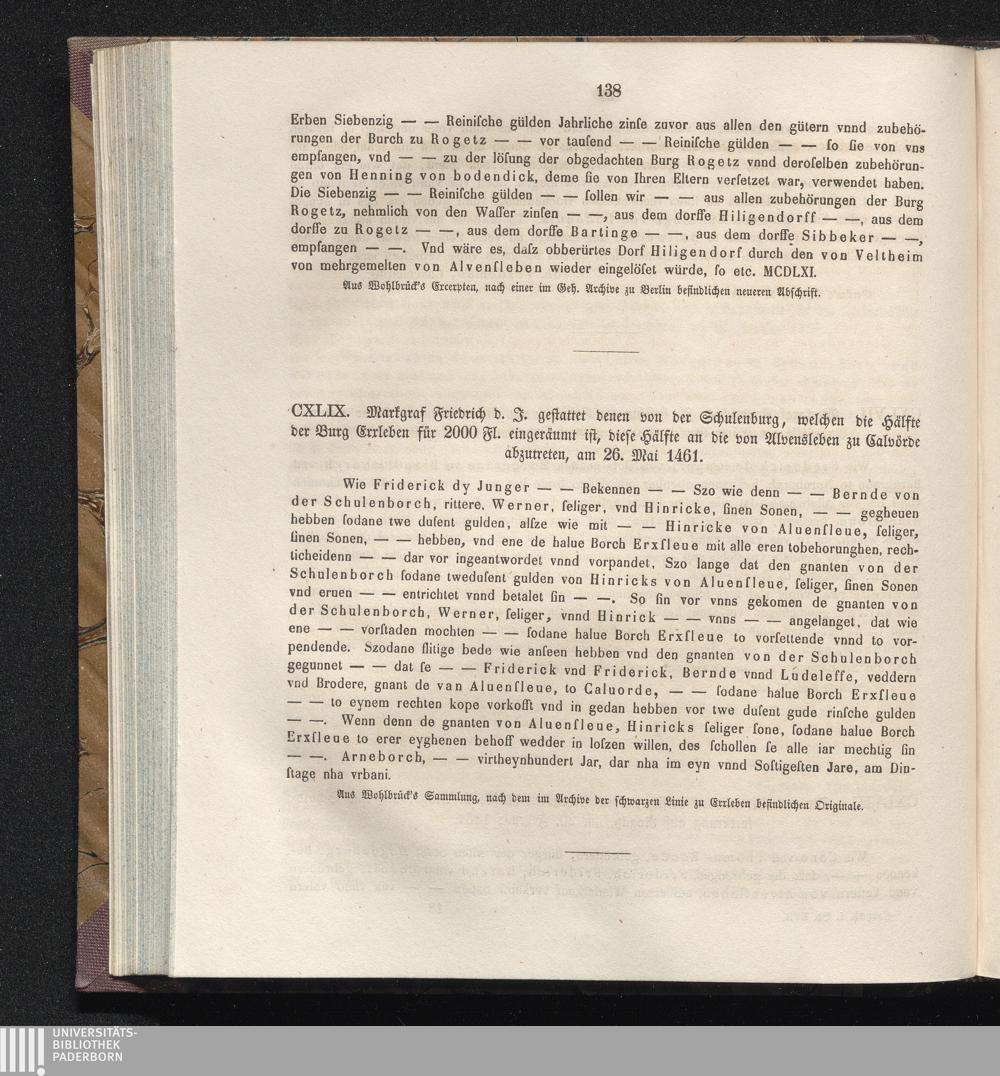 CXLIX. Markgraf Friedrich d. J. gestattet denen von der Schulenburg, welchen die[...]