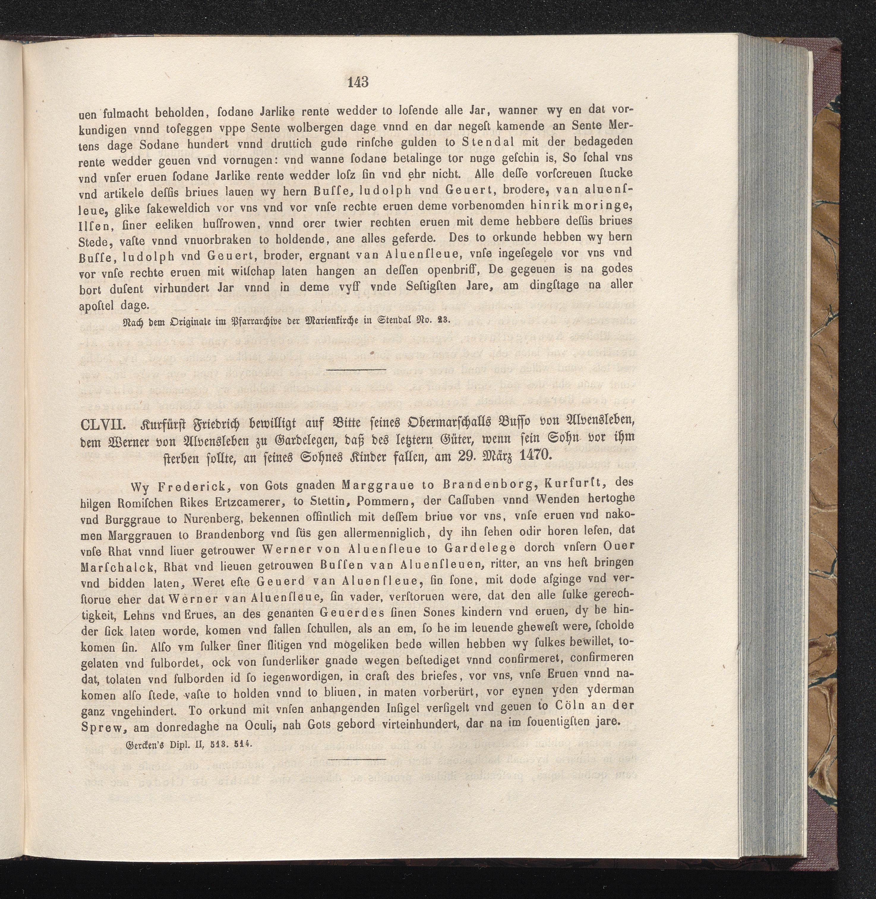 CLVII. Kurfürst Friedrich bewilligt auf Bitte seines Obermarschalls Busso von Alvensleben,[...]