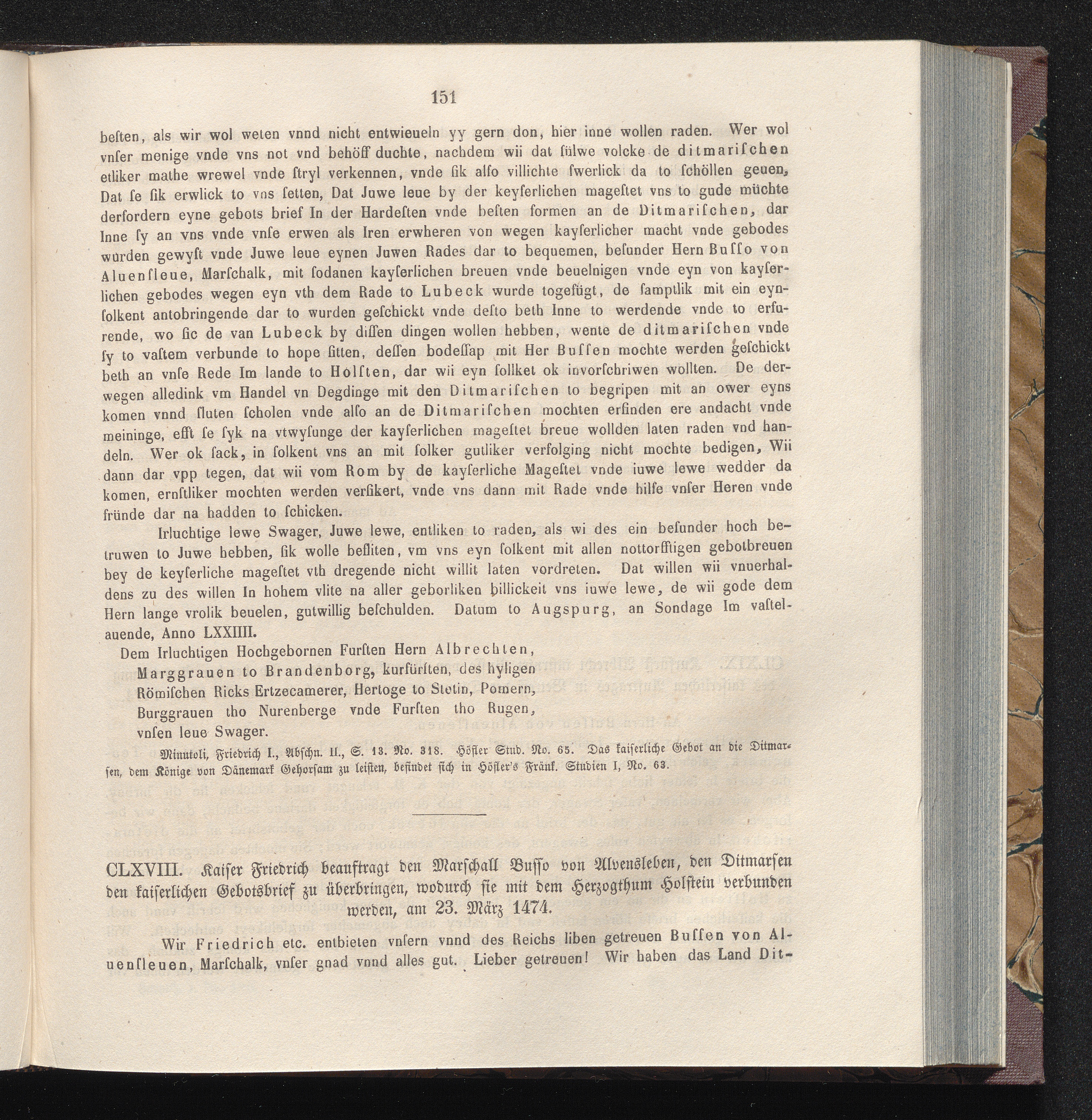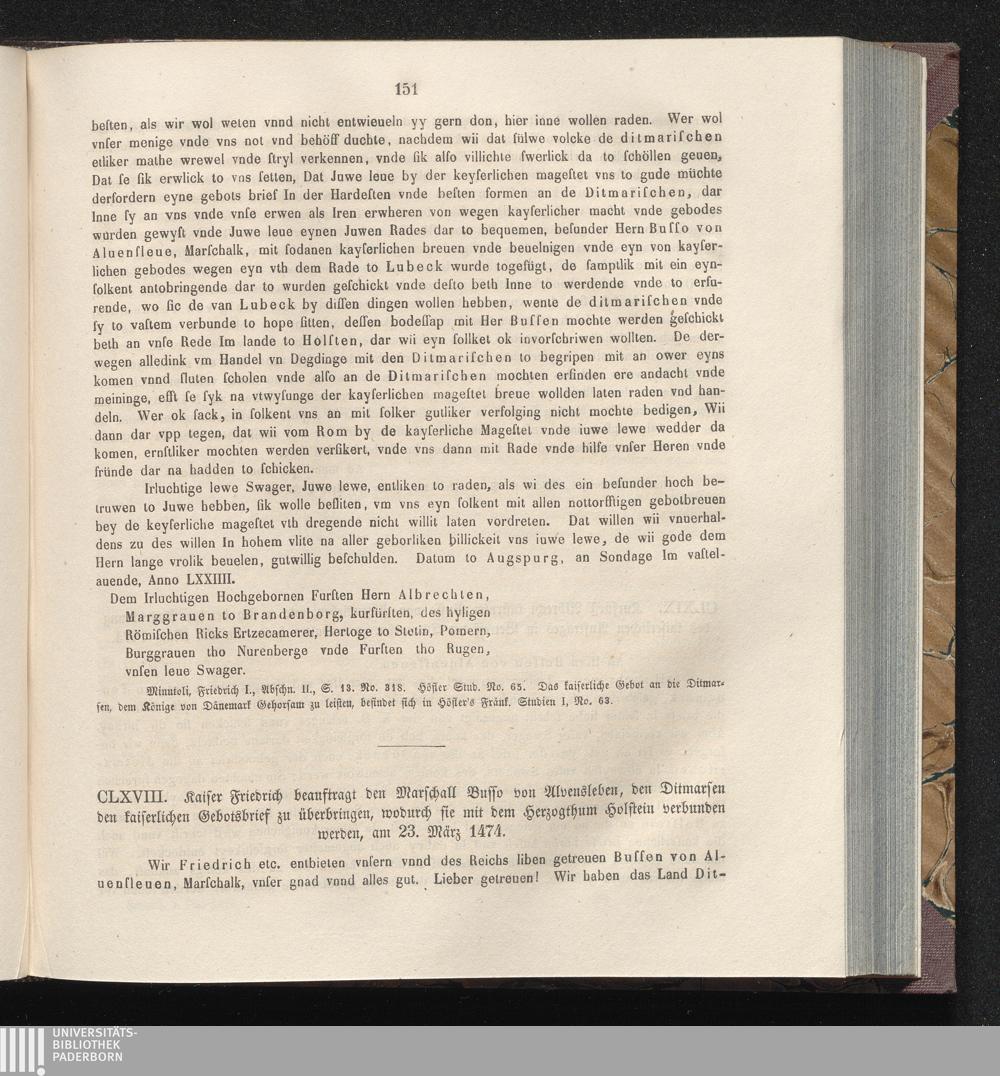 CLXVIII. Kaiser Friedrich beauftragt den Marschall Busso von Alvensleben, den Ditmarsen[...]