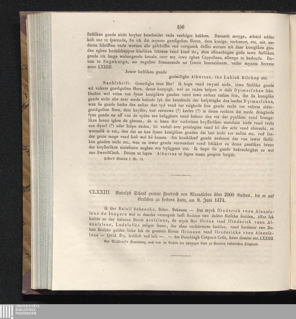 CLXXIII. Rudolph Schenk quittirt Friedrich von Alvensleben über 2000 Gulden, die[...]