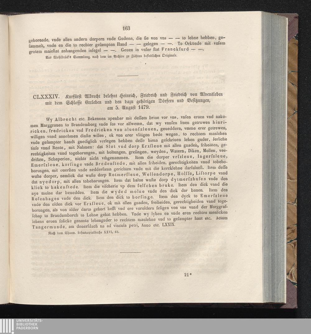 CLXXXIV. Kurfürst Albrecht belehnt Heinrich, Friedrich und Friedrich von Alvensleben[...]